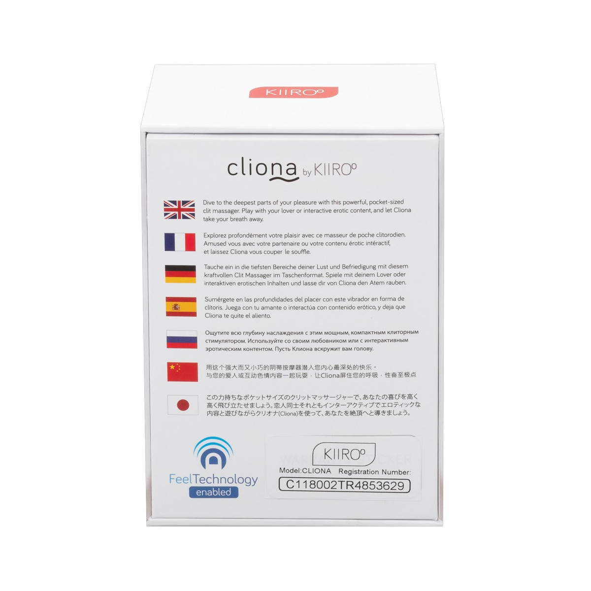 Vibrazioni hotspot potenti e profonde - offline o interattivo! Il potente e impermeabile vibratore da appoggio Cliona di Kiiroo ti delizierà con il suo design ergonomico che coccola il clitoride in particolare, ma anche tutti gli altri punti caldi. Le 4 modalità di vibrazione assicurano un piacere vario. Il suo pratico formato tascabile rende questo leggero e silenzioso compagno perfetto per i viaggi e gli spostamenti. Si aziona intuitivamente con tocchi leggeri (touchpad). Per il sesso a distanza, Cliona può essere collegato e sincronizzato con altri giocattoli compatibili di Kiiroo o con giocattoli abilitati FeelTech in tutto il mondo tramite Bluetooth. Il vibratore è anche compatibile con molte piattaforme internet (ad esempio FeelMe.com), ad esempio per utilizzare video interattivi in 2D o VR. Ricaricabile - cavo di ricarica USB incluso. 11,5 cm x 5 cm x 4 cm. Peso 75 g. ABS, silicone.