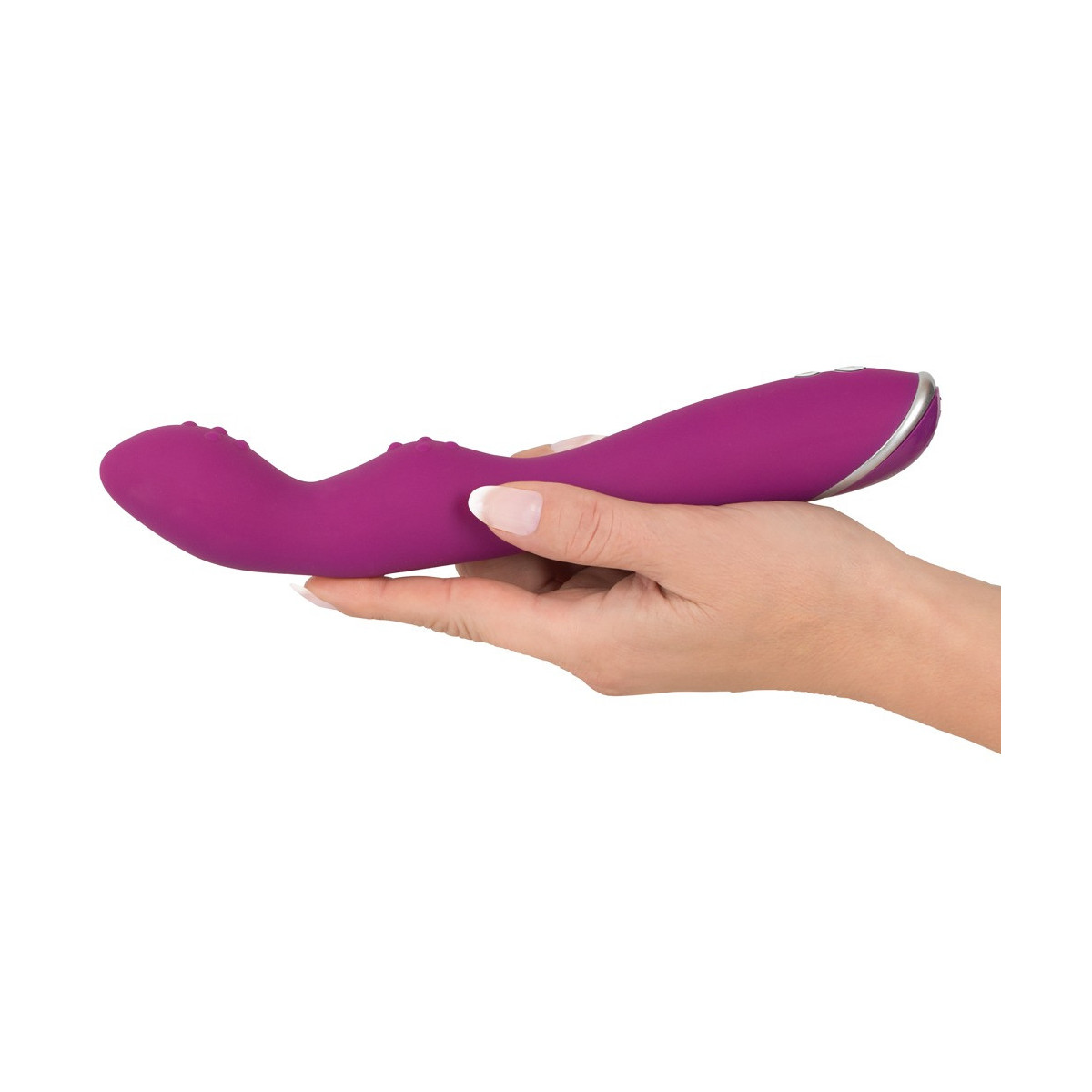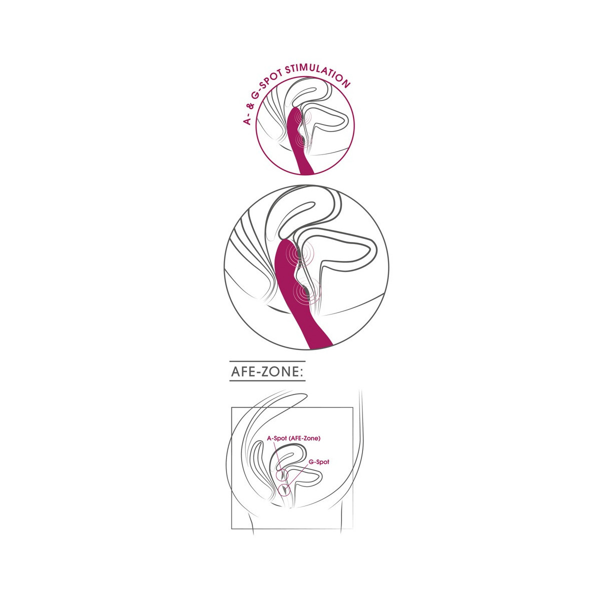Questo vibratore spot A&G di Sweet Smile, con 2 motori e 7 modalità di vibrazione, è progettato con le sue 2 teste di stimolazione per stimolare specificamente sia la zona G che la zona A. La zona G è un termine piacevole per molti, mentre la zona A è apprezzata anche a livello inconscio: spesso viene raggiunta dal pene nella posizione della pecorina e si trova appena prima della cervice. La superficie morbida del vibratore consente uno scorrimento morbido e profondo nelle zone A e G, mentre i nodi di stimolazione forniscono ulteriore soddisfazione.