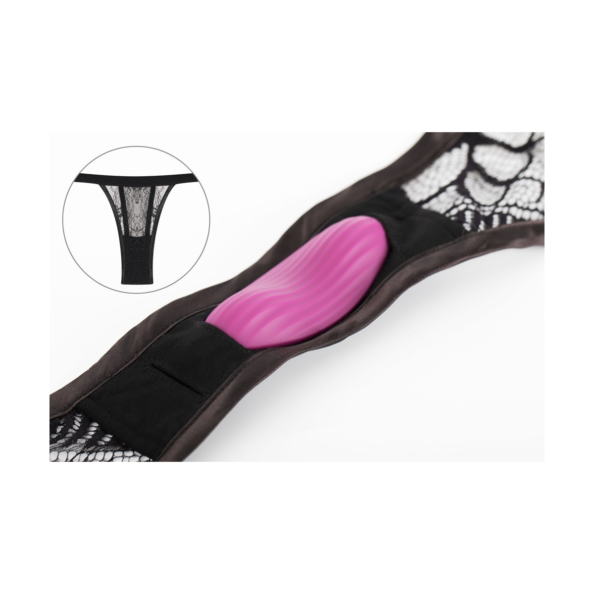 Comodamente controllabile tramite app - ovunque e in qualsiasi momento - anche dal tuo partner! Vibratore ricaricabile da appoggio che può essere collocato nelle mutandine di pizzo allegate per coccole silenziose e discrete. Il piccolo e maneggevole vibratore da appoggio ha una forma ergonomica ottimale, è dotato di scanalature per la stimolazione e si adatta perfettamente ai contorni del corpo in modo morbido e flessibile. 11 modalità di vibrazione silenziose possono essere comodamente controllate tramite app o Bluetooth - da qualsiasi parte del mondo, in qualsiasi momento e da chi vuoi tu. Cavo USB e borsa per la conservazione inclusi. Vibratore: 9 x 3,9 x 2,5 cm. 43,8 g. Silicone, PU. Gli slip in pizzo con cintura variabile si adattano alle taglie S-XL. 100% poliester