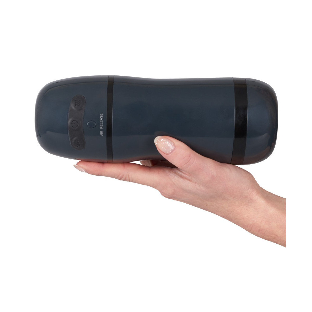 Questo masturbatore massaggia ampiamente il pene con le sue 4 modalità di vibrazione e 3 modalità di aspirazione che sono individualmente controllabili sull'asta. Il pene viene prima ricevuto e accarezzato dal manicotto con scanalature eccitanti e più in profondità da nodi delicati. Una valvola di sicurezza fornisce la sicurezza necessaria per fermare e invertire immediatamente il processo di aspirazione. La chiusura a bottone rende questo masturbatore un compagno di viaggio discreto, mentre la custodia protettiva lo tiene al sicuro dallo sporco e contribuisce ad un esterno discreto. Il manicotto è rimovibile per una pulizia facile e igienica. Cavo di ricarica USB incluso.