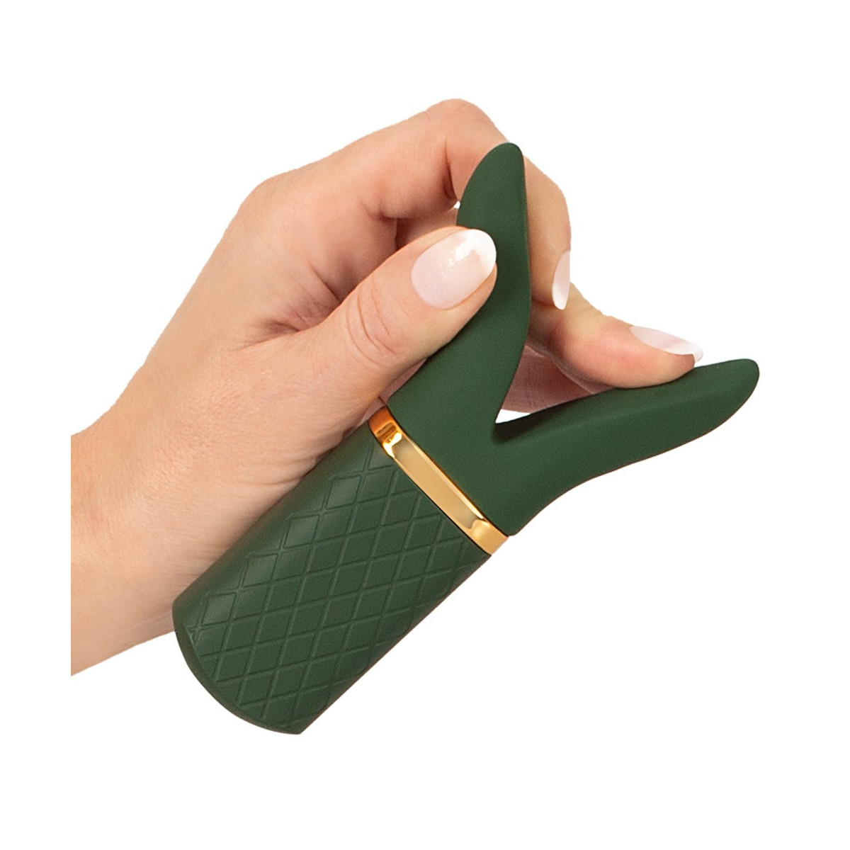 Look elegante e vibro-refinizione! Lussuoso mini vibratore Split Tip di Emerald Love dal design elegante con una caratteristica struttura a diamante e 2 braccia mobili perfette per stimolare specifici punti di piacere (es. clitoride, capezzoli, testicoli, perineo, ecc.). 10 modalità di vibrazione forniscono un divertimento vario e possono essere comodamente controllate con il tocco di un pulsante. Anche nella vasca da bagno o nella doccia, perché il vibratore è impermeabile! La texture vellutata al tatto delle due braccia flessibili fornisce una sensazione molto piacevole sulla pelle durante la stimolazione e le coccole. Ricaricabile - cavo di ricarica USB incluso. Lunghezza totale 13,1 cm, Ø max. 3,8 cm; bracci lunghi 5,2 cm ciascuno, Ø max. 1,5 cm. Peso 89 g. Silicone, PU, ABS.