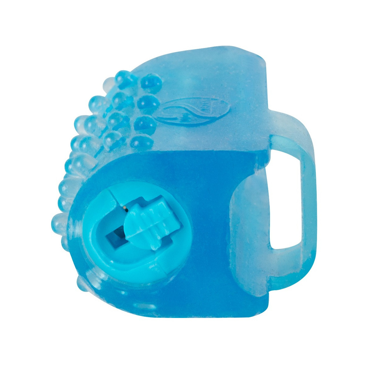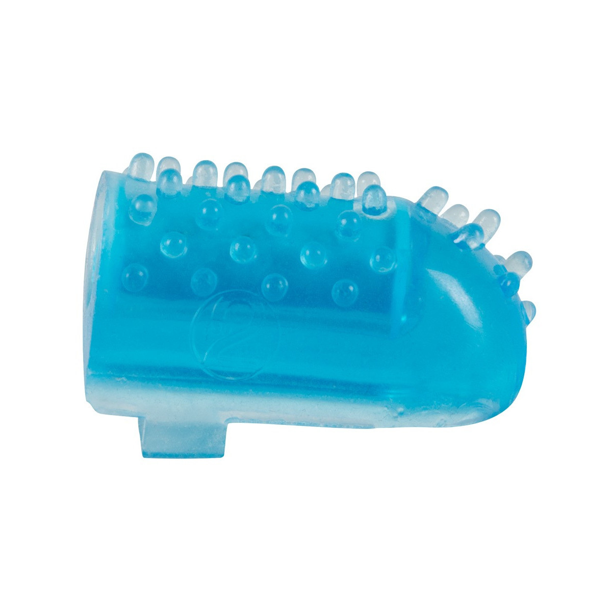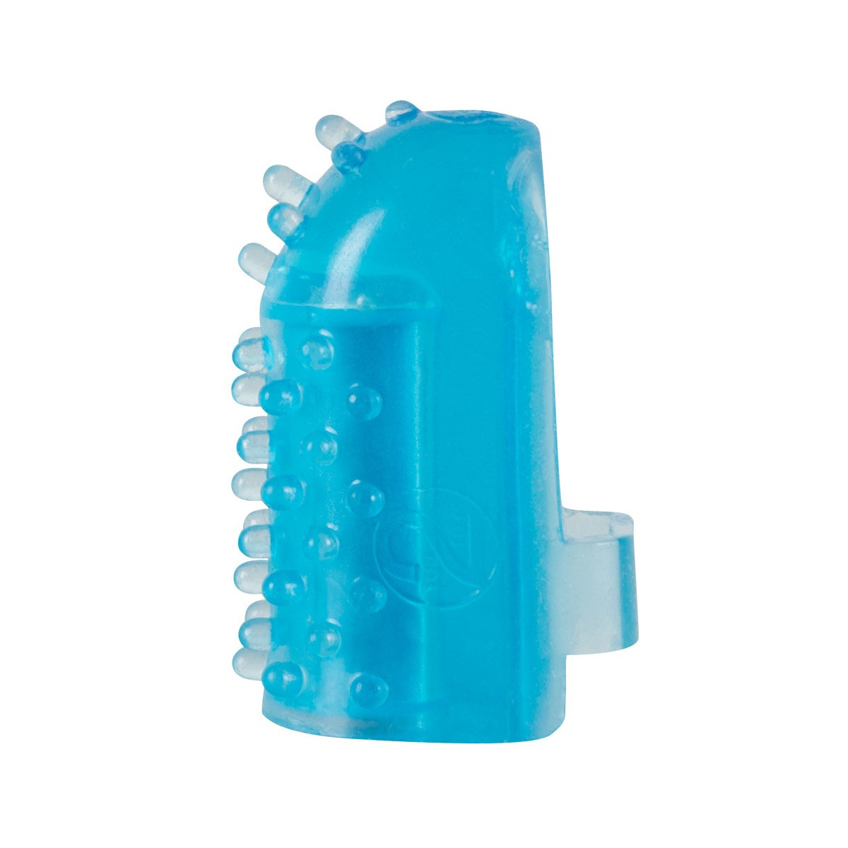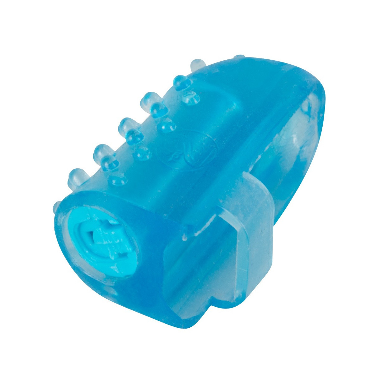 Vibratore a dita blu con un'ansa elastica. 4,4 cm di lunghezza totale, Ø 2 cm. Materiale: TPR, ABS. Inclusa la batteria non sostituibile.