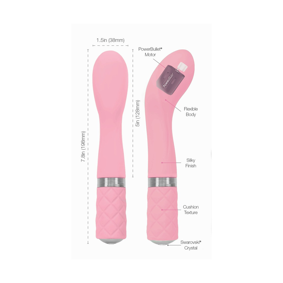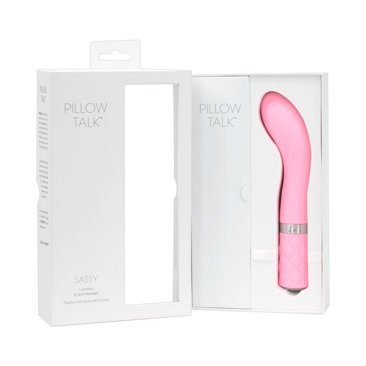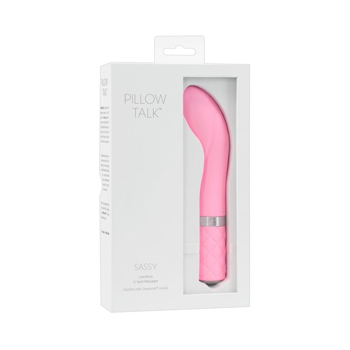 L'elegante vibratore Sassy di Pillow Talk coccola intensamente la vagina con scanalature di stimolazione in rilievo sul fusto e il punto G in particolare con la sua testa idealmente curva. Grazie alla sua superficie vellutata e morbida al tatto, scivola verso la sua destinazione intima come per magia. Il potente motore Powerbullet offre una stimolazione eccitante con vibrazioni profonde che possono essere controllate gradualmente e con precisione al tocco di un pulsante. Il pulsante di comando brilla con una preziosa pietra Swarovski®! Altri punti di forza sono la funzione "press & hold" per aumentare la potenza, la funzione quick-off per uno spegnimento immediato e il pratico blocco dei pulsanti.