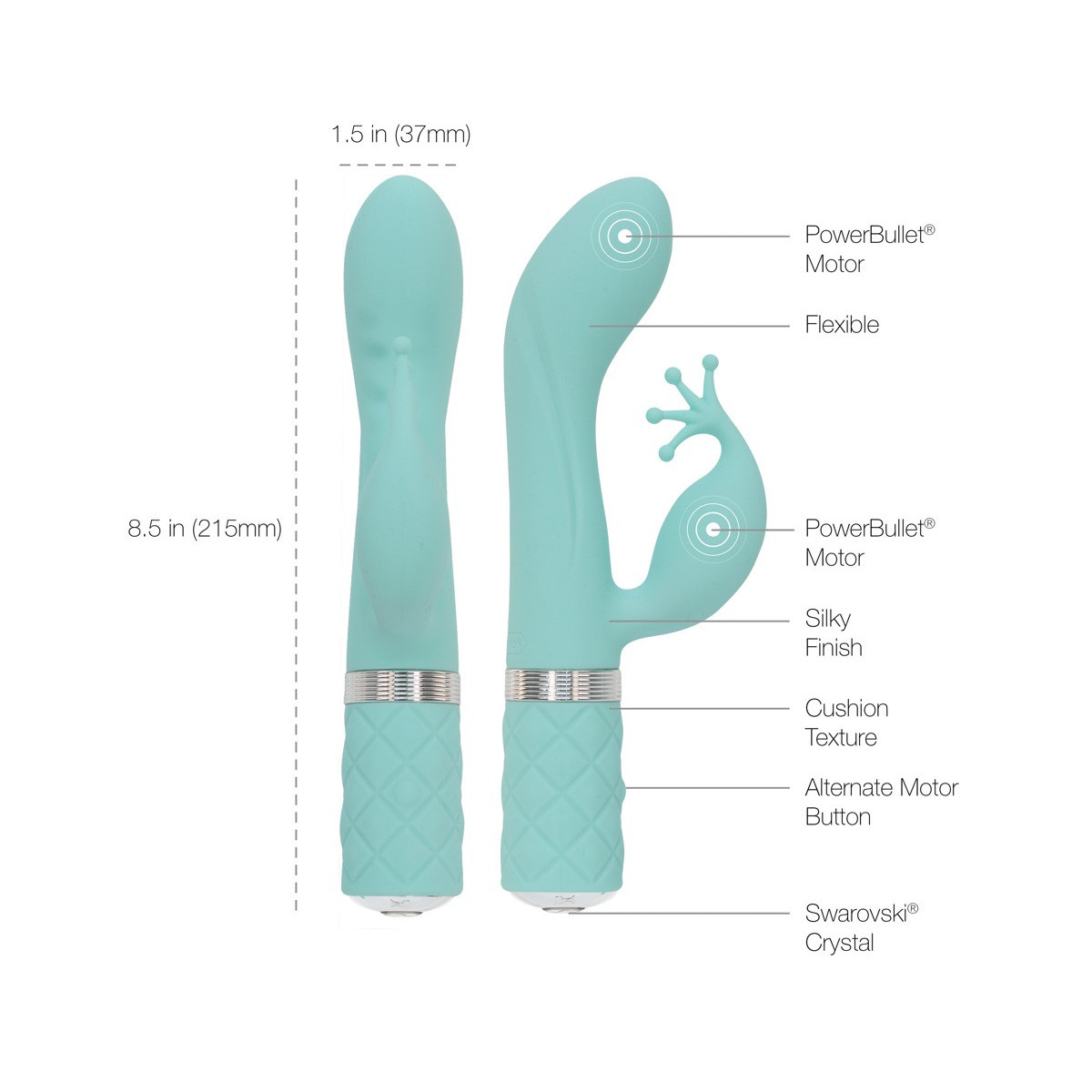 Pillow Talk Kinky Teal - Vibratore Punto G con Stimolazine del Clitoride, Ricaricabile, Turchese