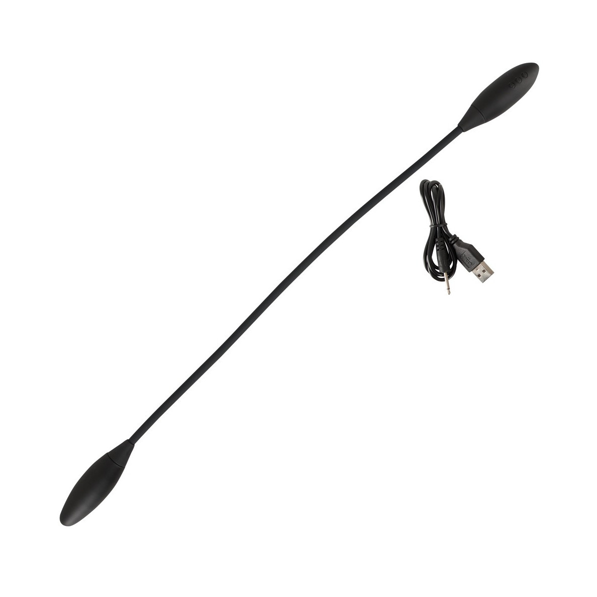 Per un vibrante piacere in solitaria o per un caldo divertimento di coppia! Vibratore di coppia flessibile con un vibrobullet ad ogni estremità. Per il divertimento da soli, entrambe le estremità possono essere inserite allo stesso tempo; per il gioco di coppia, entrambi i partner possono godere di un vibrobullet ciascuno. La superficie delicata delle pallottole e la forma sottile le rendono facili da inserire nella vagina o nell'ano. Sono anche adatti per massaggiare e stimolare i punti caldi esterni. Con le loro 15 diverse modalità di vibrazione, i Bullets vi invitano anche a provarle. Anche nelle zone umide, perché il vibratore di coppia è impermeabile. Il pulsante S/D può essere usato per controllare se solo un'estremità o entrambe le estremità vibrano. Ricaricabile con il cavo USB incluso. Lunghezza totale 65 cm, lunghezza proiettili ciascuno 8,3 cm, Ø 3,2 cm; 130 g. Silicone, ABS, PU.