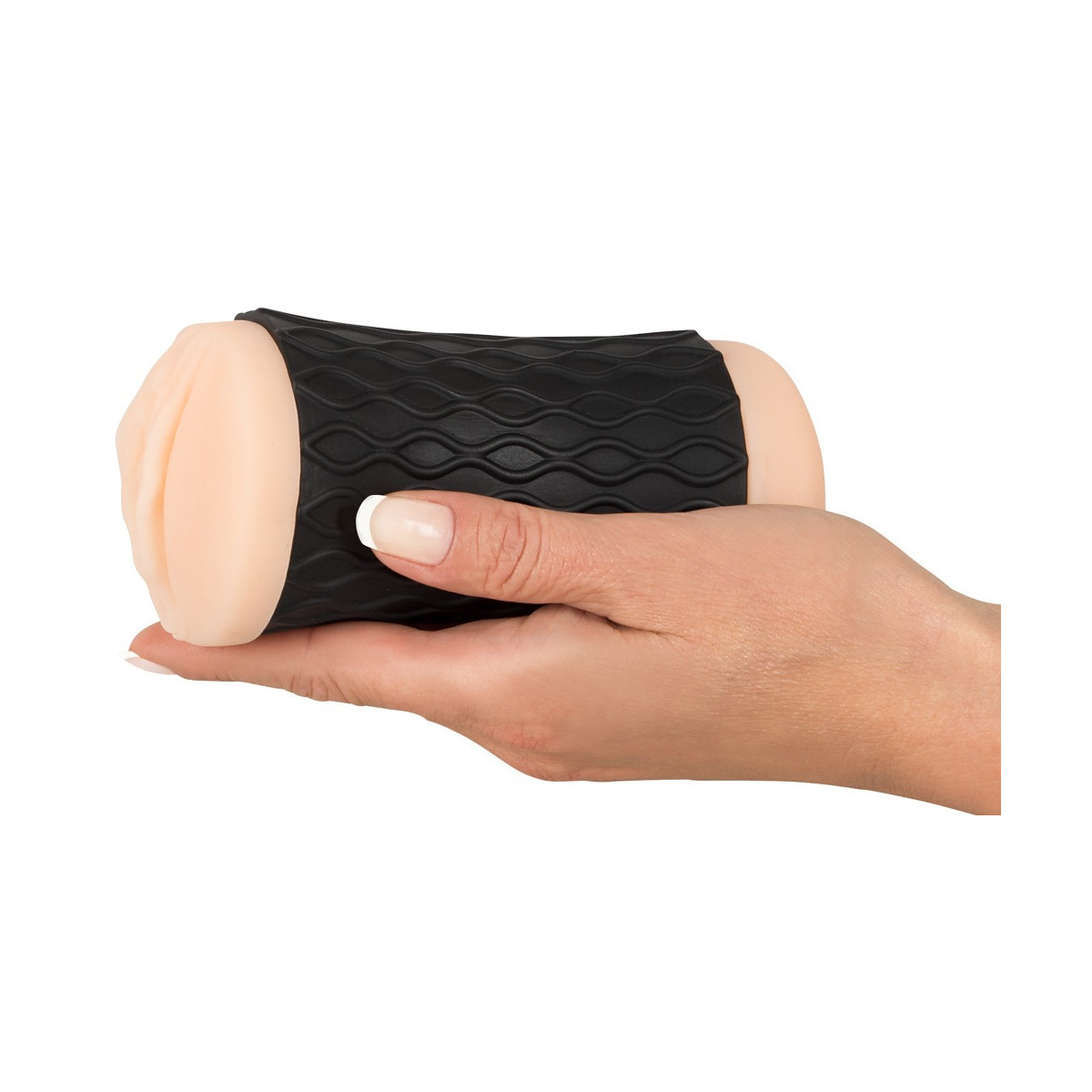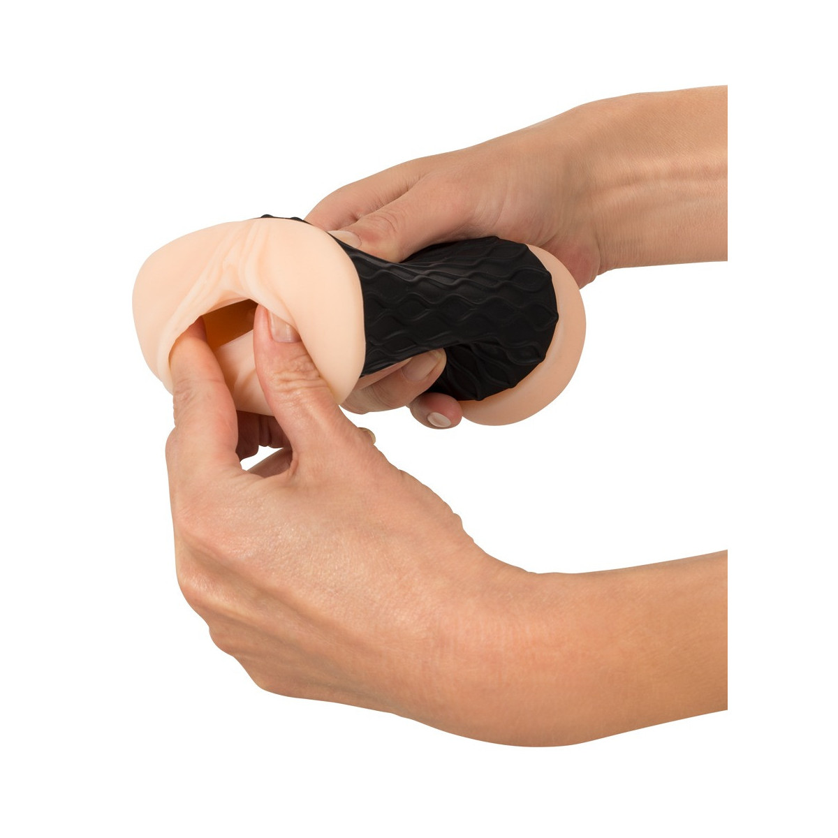 Questo eccitante seduttore vi promette un doppio piacere, perché questo masturbatore color pelle nasconde due aperture di piacere in una volta sola! Decidete voi stessi ciò che volete: l'invitante apertura della vagina con un canale del piacere con un canale del piacere scanalato dietro di essa o l'apertura dell'ano paffuto con un canale del piacere scanalato. Il diametro del canale del piacere si adatta sempre perfettamente grazie al materiale elastico e simile alla pelle. E non importa cosa scegliete, il bracciale nero strutturato assicura che il masturbatore sia sempre tenuto saldamente in mano.