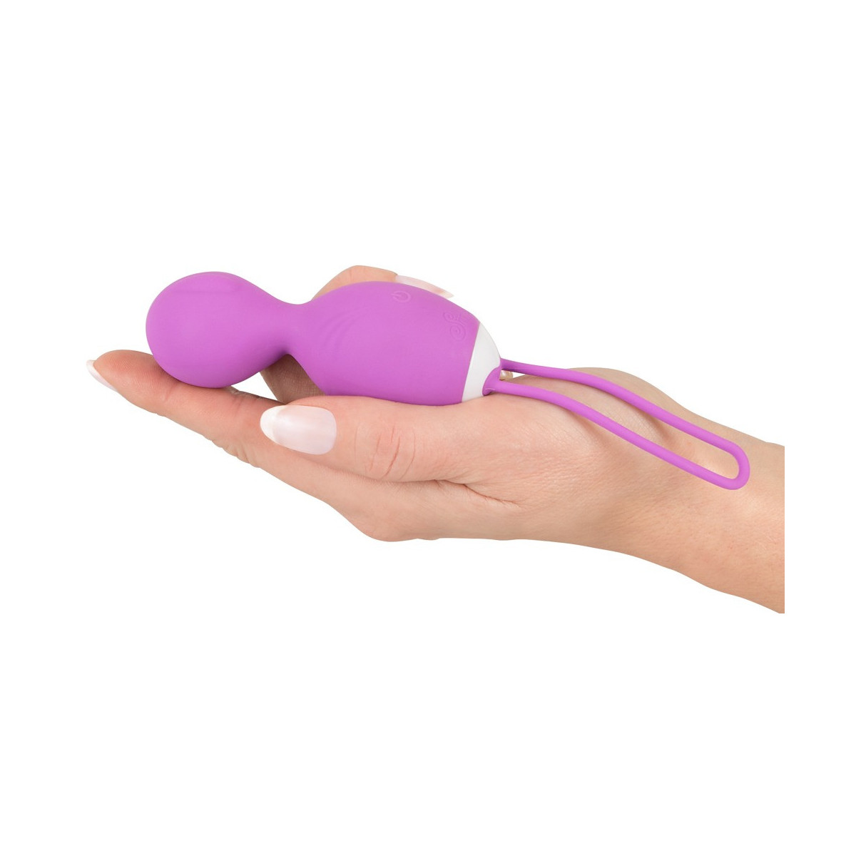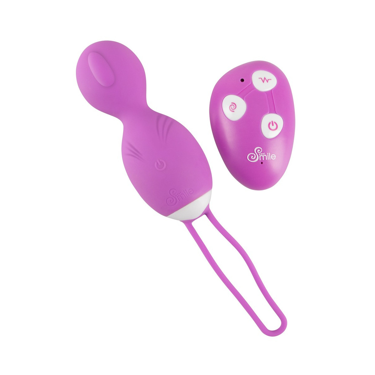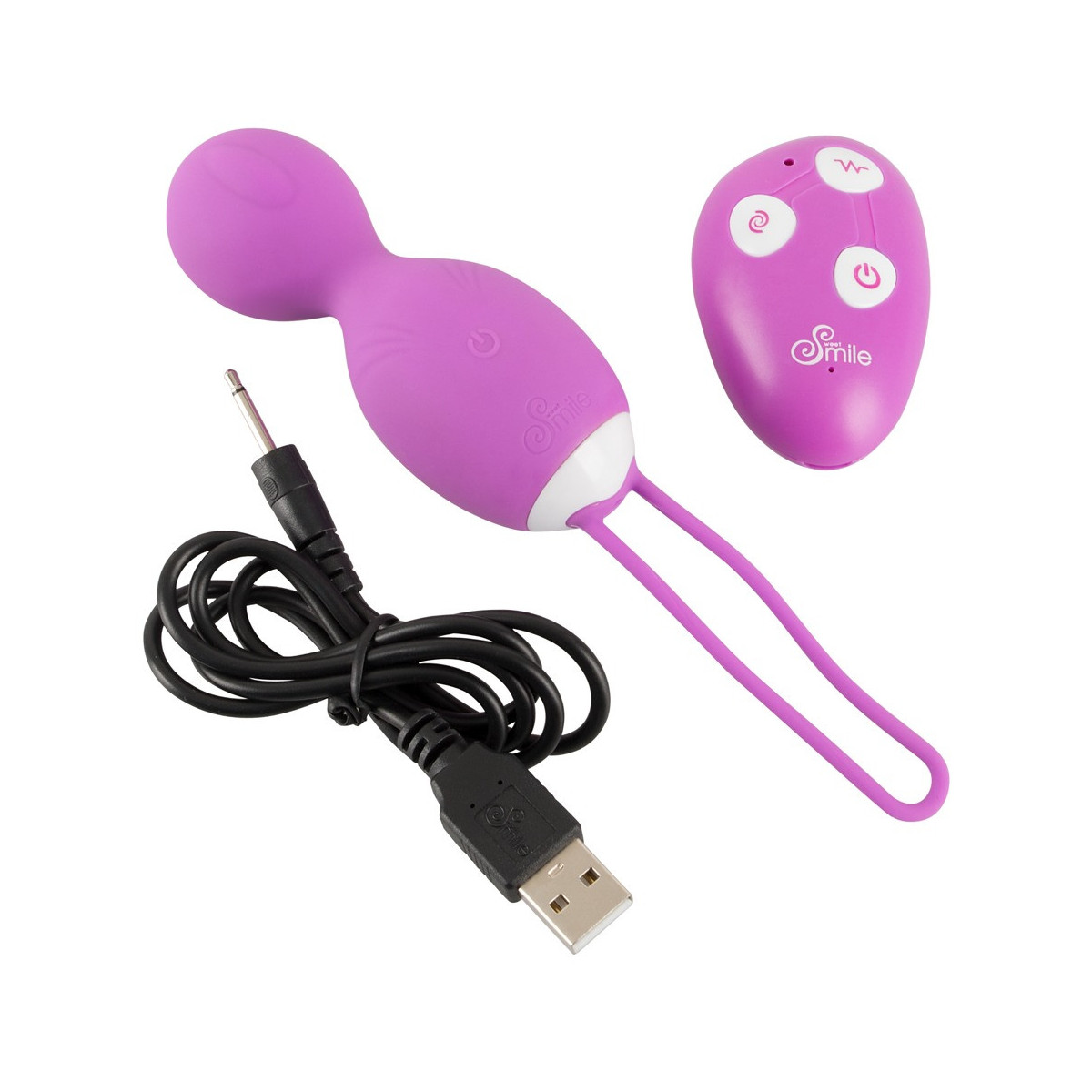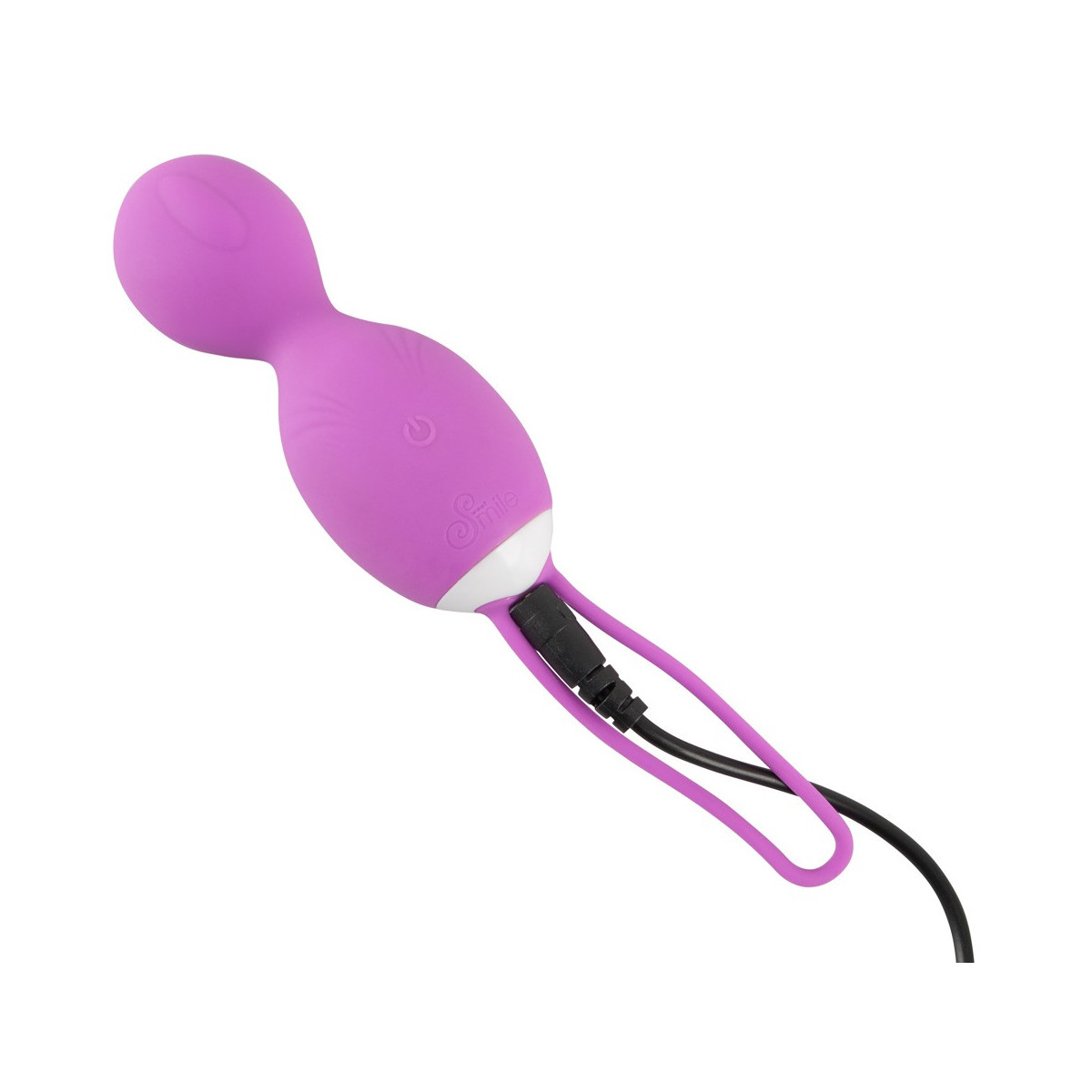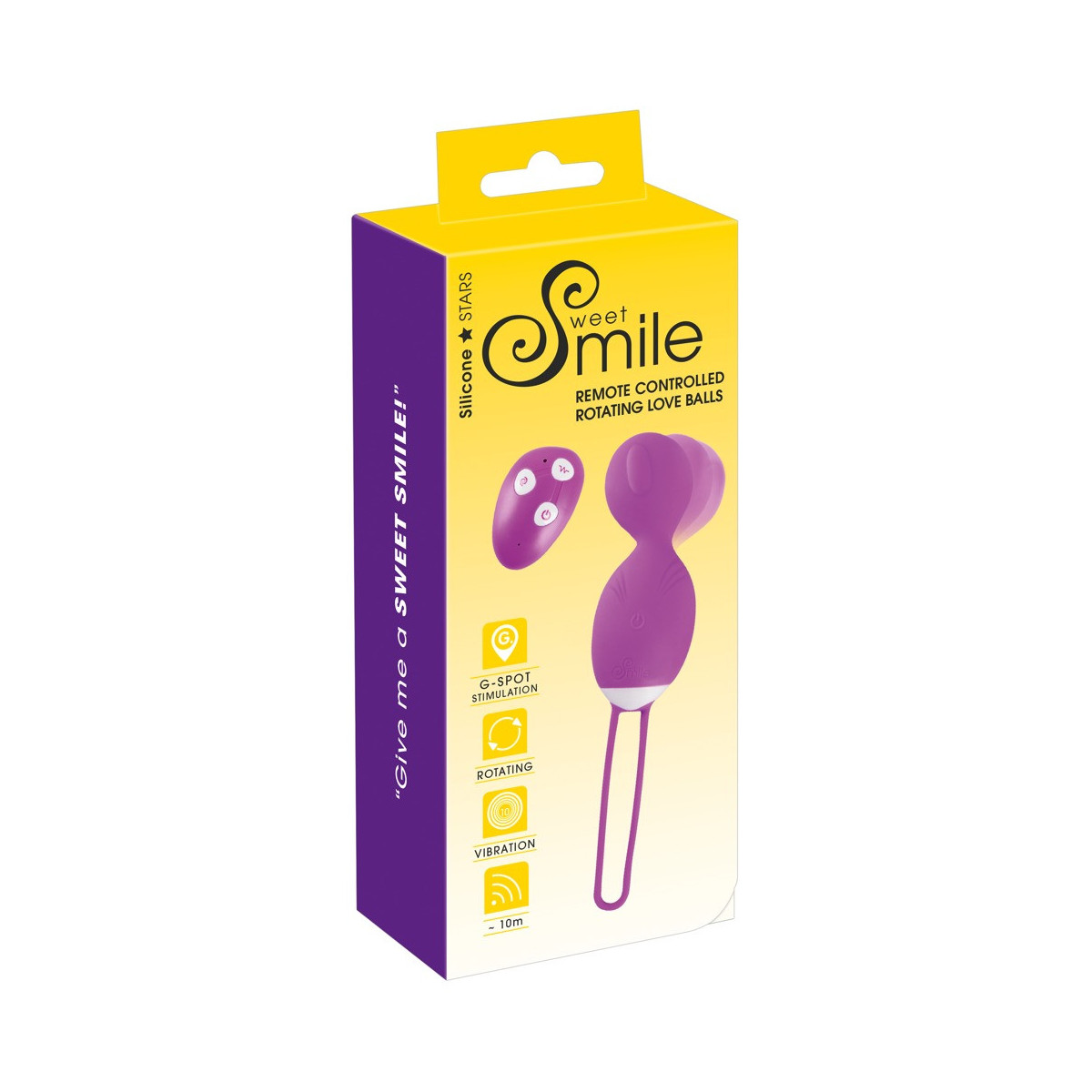 Rechargeable RC Rotating Love Ball di Sweet Smile con 10 modalità di vibrazione e una modalità di rotazione - tutto (compresa l'accensione) può essere comodamente controllato con il telecomando senza fili. Con cinturino elastico di ritorno e design a forma di cono per un inserimento extra facile. Perfetto per i principianti che non hanno esperienza del pavimento pelvico o per una stimolazione delicata. Texture morbida al tatto.
