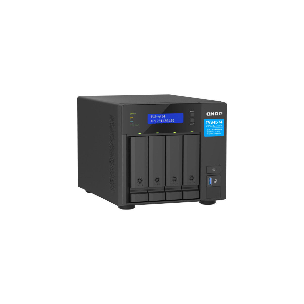 QNAP TVS-H474. Tipi di unità di archiviazione supportate: HDD & SSD, Interfacce dell'unità di archiviazione supportate: Seriale ATA II, Serial ATA III, Dimensioni dei dispositivi di archivio supportati: 2.5,3.5". Famiglia processore: Intel® Pentium®, Produttore processore: Intel, Modello del processore: G7400. RAM installata: 8 GB, Tipo di RAM: DDR4, Massima RAM supportata: 128 GB. Velocità trasferimento Ethernet LAN: 10,100,1000,2500 Mbit/s, Protocolli di rete supportati: IPv4, IPv6. Versione HDMI: 1.4b