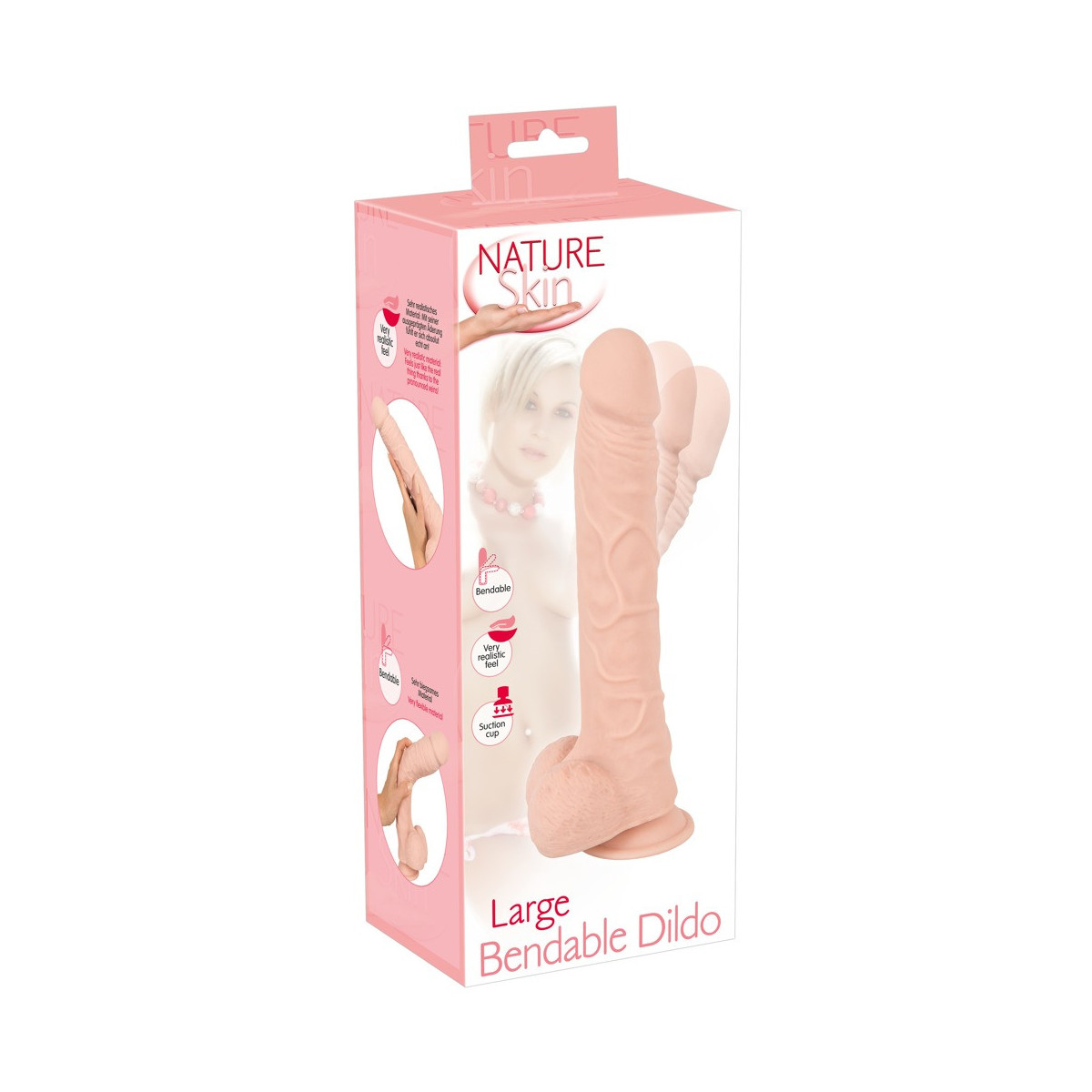 Grande dildo pieghevole di Nature Skin in un dettagliato look da pene con glande paffuto, asta venata e testicoli aderenti. Piegabile fino a max. 30 gradi - rimane nella posizione desiderata. Su base di aspirazione.