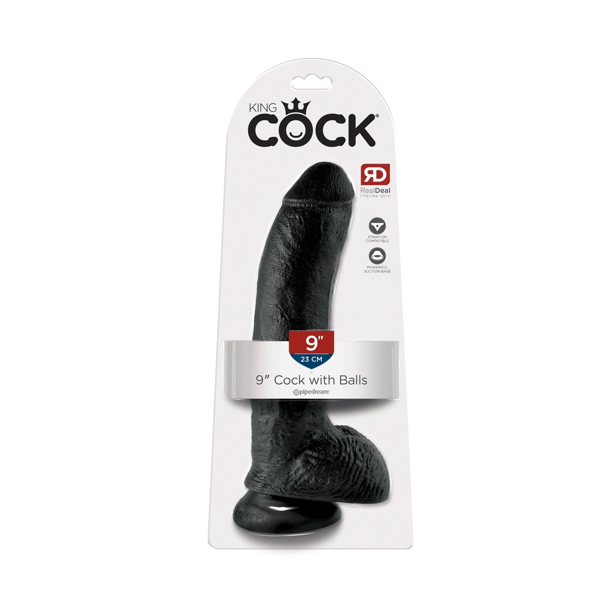 King Cock 9 With Balls Dark - Dildo Realistico con Testicoli e Ventosa, Nero