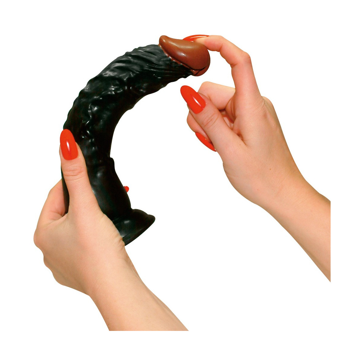 Dildo su piede a ventosa sicuro. Estremamente flessibile. Ca. 23 cm di lunghezza, Ø 4-4,5 cm. Nero. Materiale: PVC.