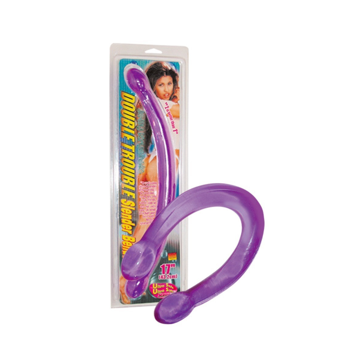 L’idea di essere posseduta contemporaneamente da due uomini, è una delle vostra fantasie segrete? Con un dildo doppio pieghevole potete farvi un’idea della sensazione! Ma questo non significa che questo pene non può entrare in azione anche nei giochi di partner - le varianti pensabili sono quasi infinite! Dildo doppio color viola. 43 cm di lunghezza, Ø 2-3 cm. Materiale: PVC.