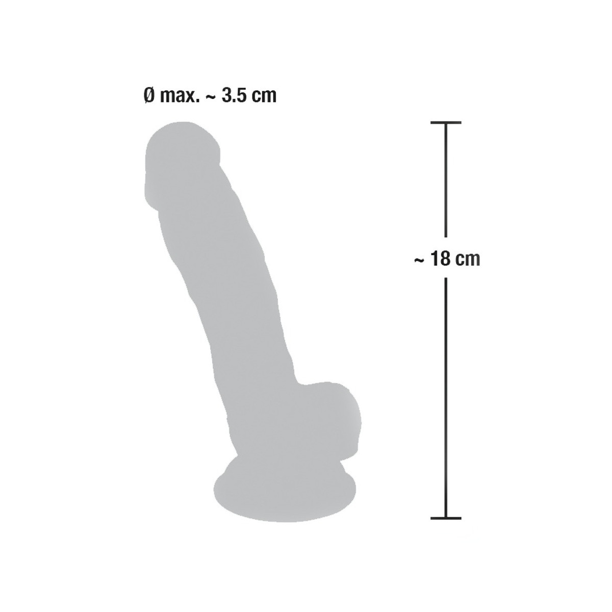 Dildo in silicone medico eccitante e realistico con glande paffuto, venature sorprendenti e testicoli aderenti. Il dildo naturale è fatto senza soluzione di continuità di silicone liquido non poroso e non solo sembra assolutamente realistico, ma si sente anche lo stesso. Splendidamente rigido, ma flessibile, prende parte ad ogni posizione e scivola con la sua superficie super-morbida sulla pelle - e nelle regioni intime - come per magia. La pratica base di aspirazione permette anche di avere le mani libere.