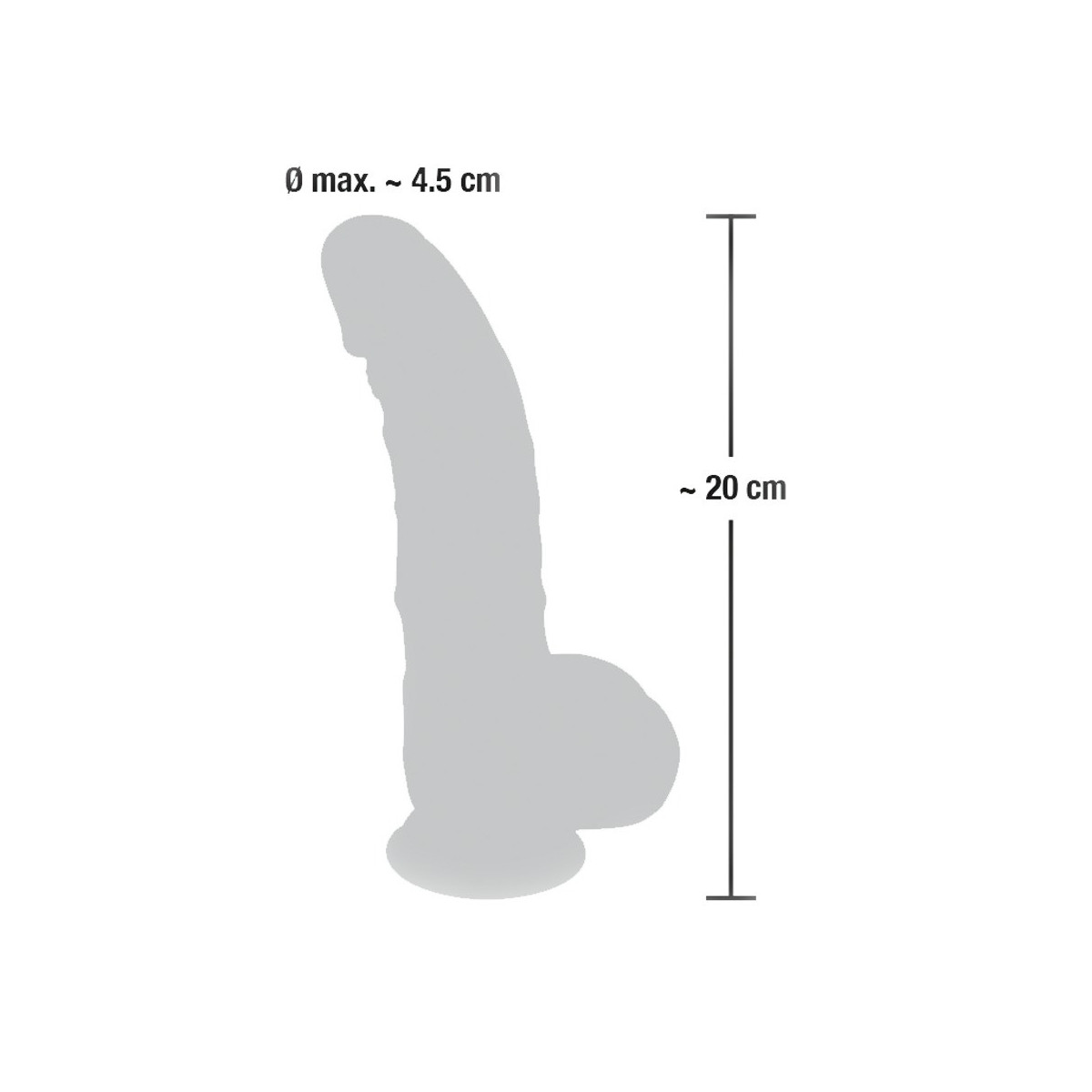 Dildo in silicone medico eccitante e realistico con glande paffuto, venature sorprendenti e testicoli aderenti. Il dildo naturale è fatto senza soluzione di continuità di silicone liquido non poroso e non solo sembra assolutamente realistico, ma si sente anche lo stesso. Splendidamente rigido, ma flessibile, prende parte ad ogni posizione e scivola con la sua superficie super-morbida sulla pelle - e nelle regioni intime - come per magia. La pratica base di aspirazione permette anche di avere le mani libere.