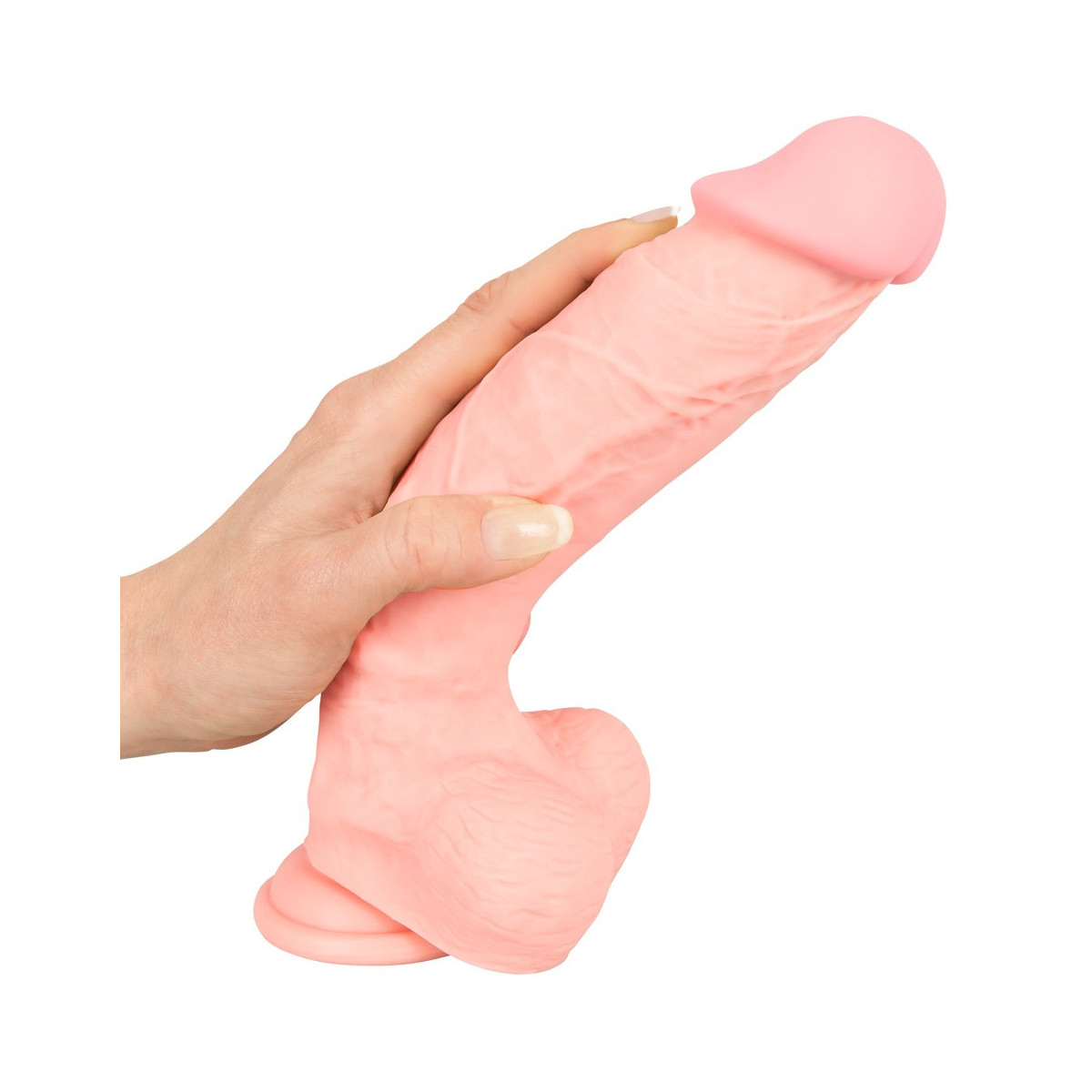 Dildo in silicone medico eccitante e realistico con glande paffuto, venature sorprendenti e testicoli aderenti. Il dildo naturale è fatto senza soluzione di continuità di silicone liquido non poroso e non solo sembra assolutamente realistico, ma si sente anche lo stesso. Splendidamente rigido, ma flessibile, prende parte ad ogni posizione e scivola con la sua superficie super-morbida sulla pelle - e nelle regioni intime - come per magia. La pratica base di aspirazione permette anche di avere le mani libere.