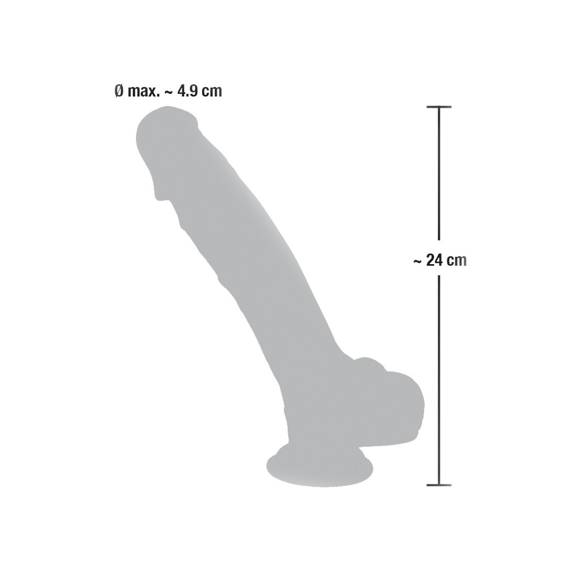 Lunghezza totale 24 cm, profondità d'inserimento 17,5 cm, Ø 3,7-4,9 cm. Silicone (silicone liquido).