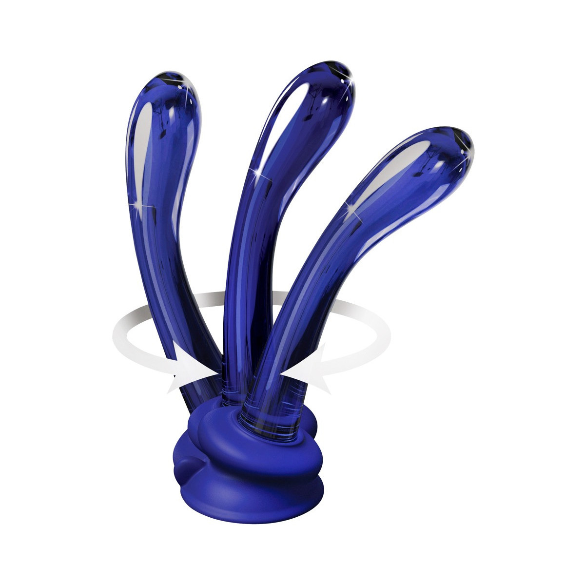 Questo dildo di vetro esclusivamente artigianale dal design curvo con una testa pronunciata e una curvatura di 40° è perfetto per il massaggio intimo e la stimolazione mirata del punto G o del punto P. Con la sua base di aspirazione (rimovibile), può essere guidato in modo comodo e flessibile e anche usato a mani libere - e può anche essere inserito in uno strap-on (non incluso). Il dildo stesso può essere temperato in acqua calda o fredda, permettendo momenti di piacere particolarmente eccitanti. Il vetro è assolutamente fatto a mano senza cuciture e si caratterizza per le sue proprietà antiallergiche.