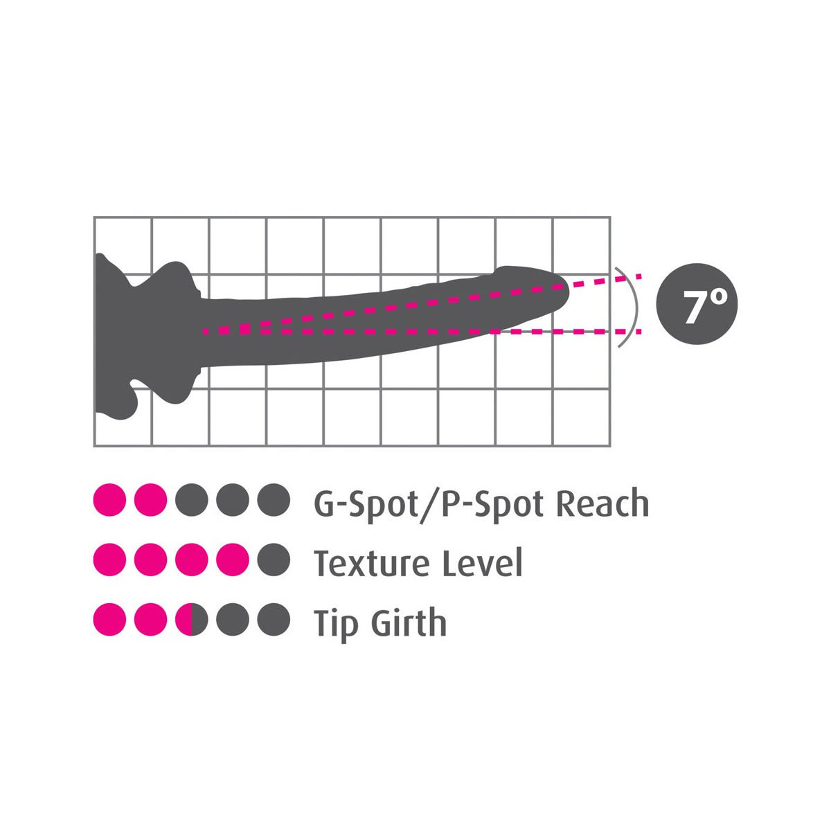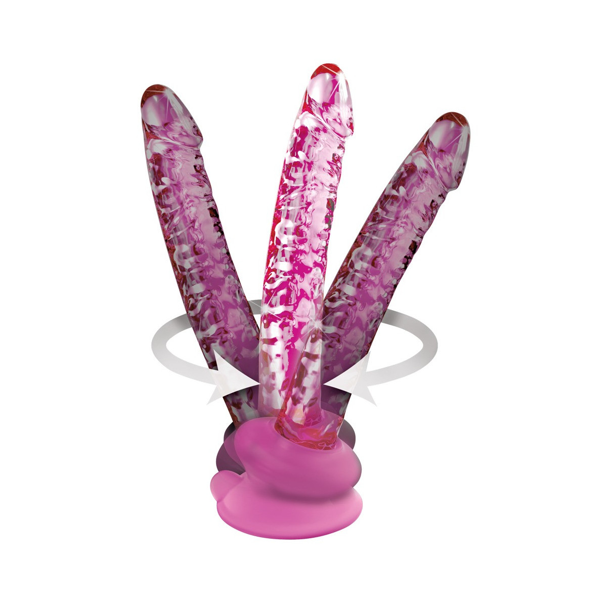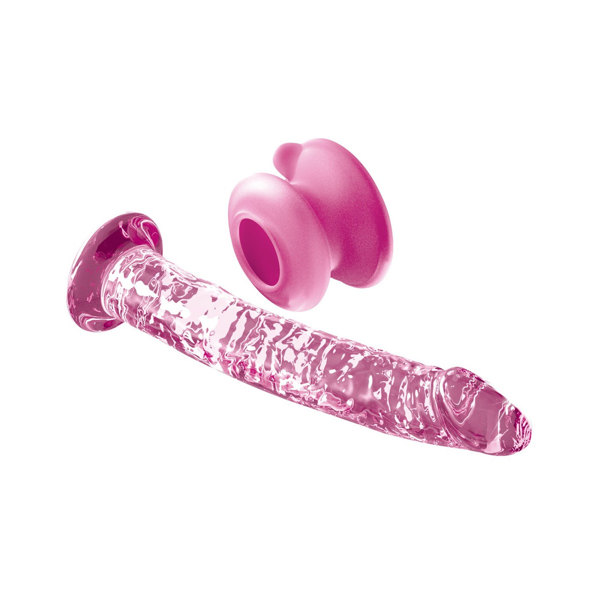 Lunghezza totale 17 cm, lunghezza di inserimento 15,5 cm, Ø 3 cm; base di aspirazione alta 4,4 cm, Ø 7 cm. Vetro, silicone.