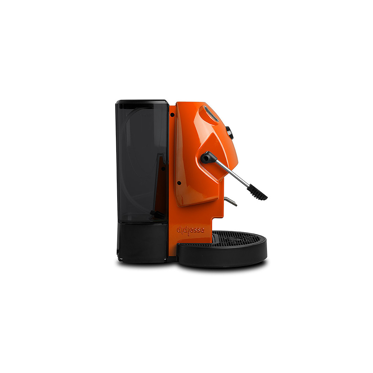 Pressione sulla cialda come una macchina da bar, ma si apre e chiude con un dito.