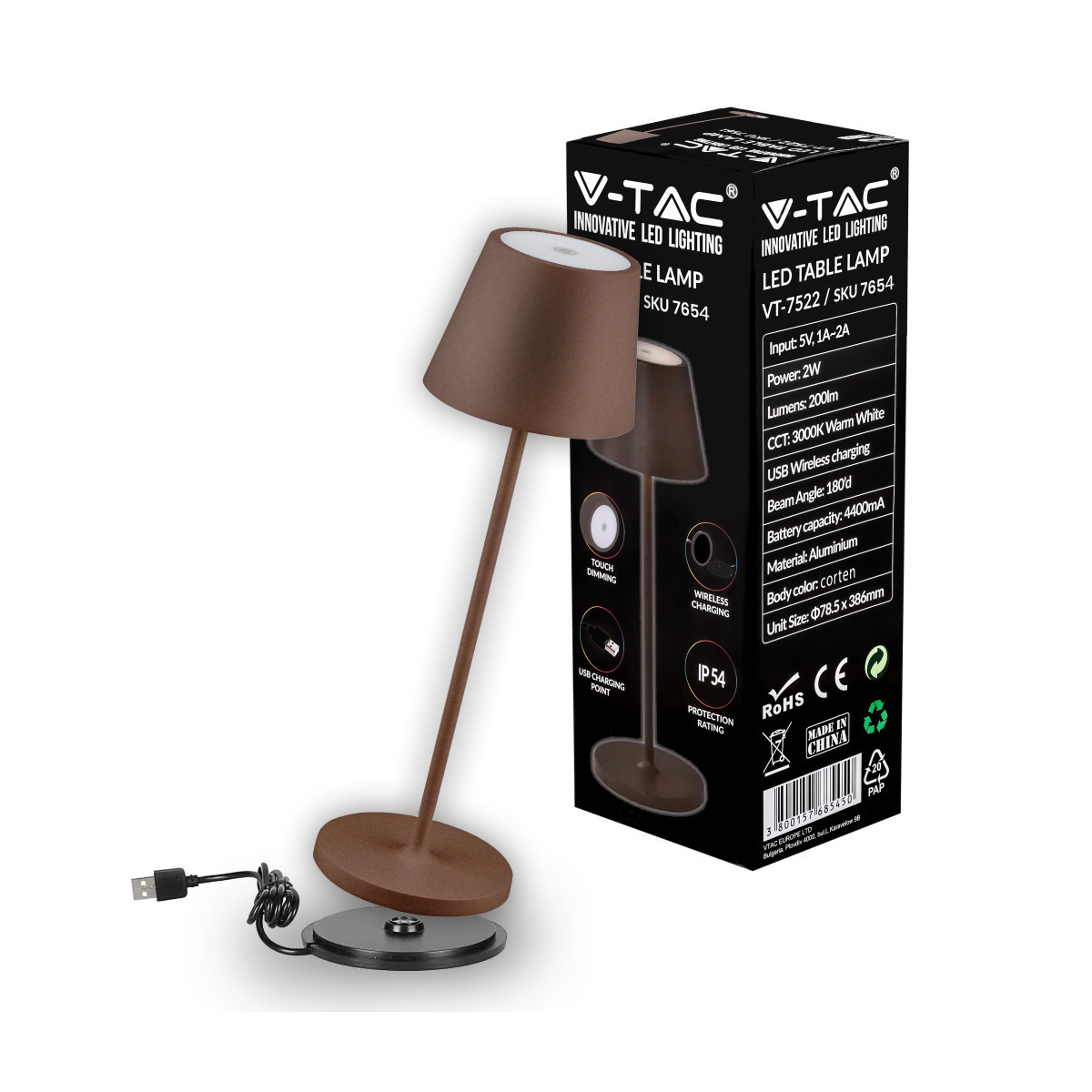 Led 2W Table Lamp(4400Ma Battery) 3000K Ip54 Corten Body