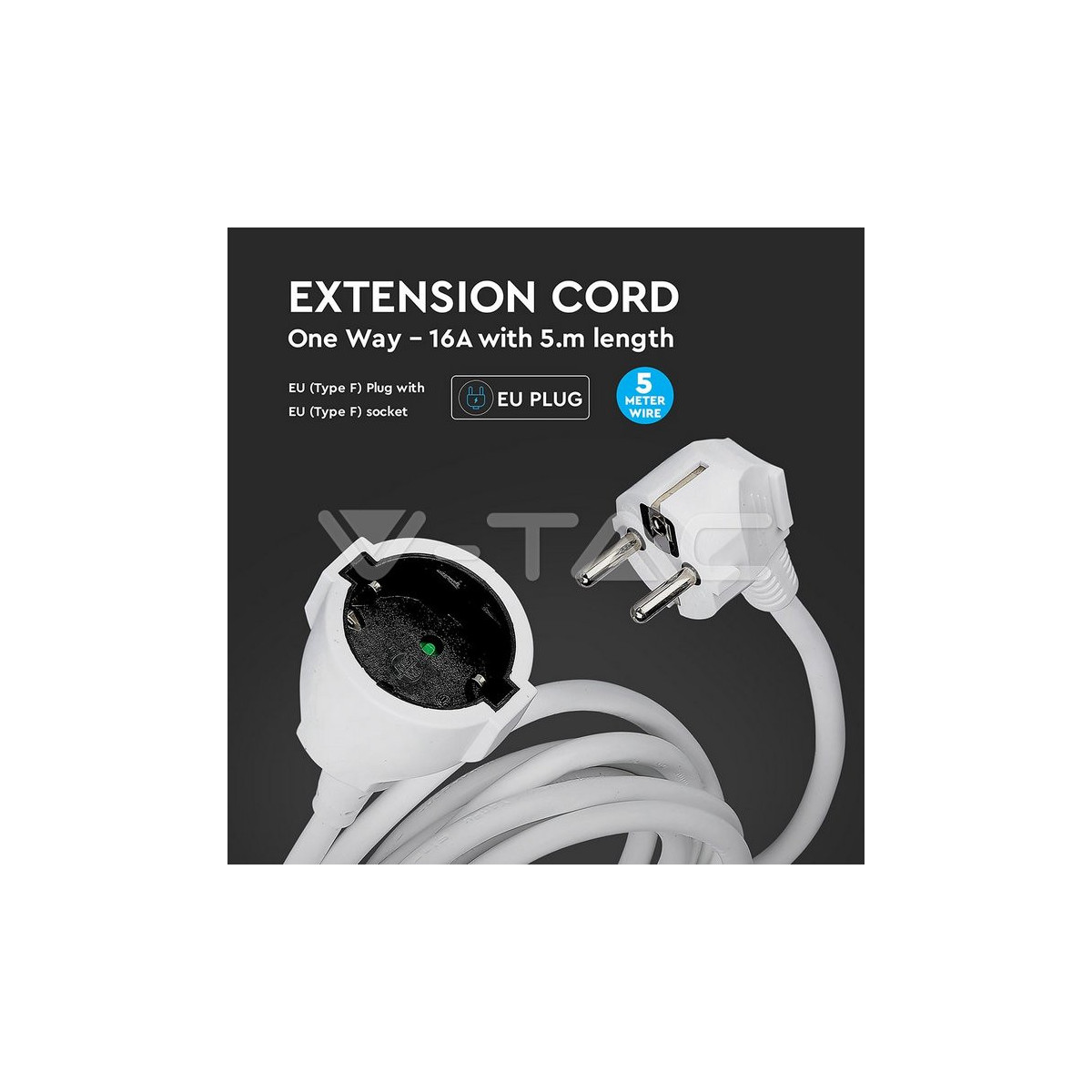 V-TAC 8732 prolunghe e multiple 5 m 1 presa(e) AC Interno/esterno Bianco