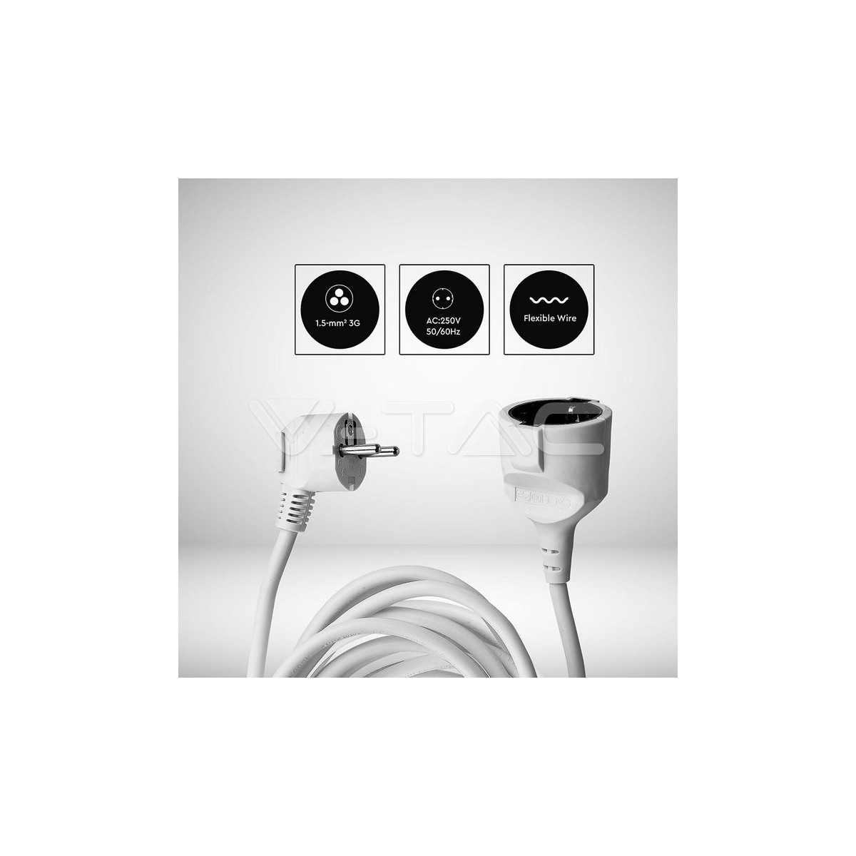 V-TAC VT-3001 prolunghe e multiple 5 m 1 presa(e) AC Interno/esterno Bianco