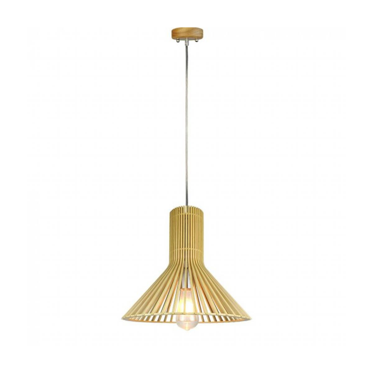 Wooden Pendant Light With Chrome Decorative Cap + Canopy + Lampshade Cone D350*H310MM