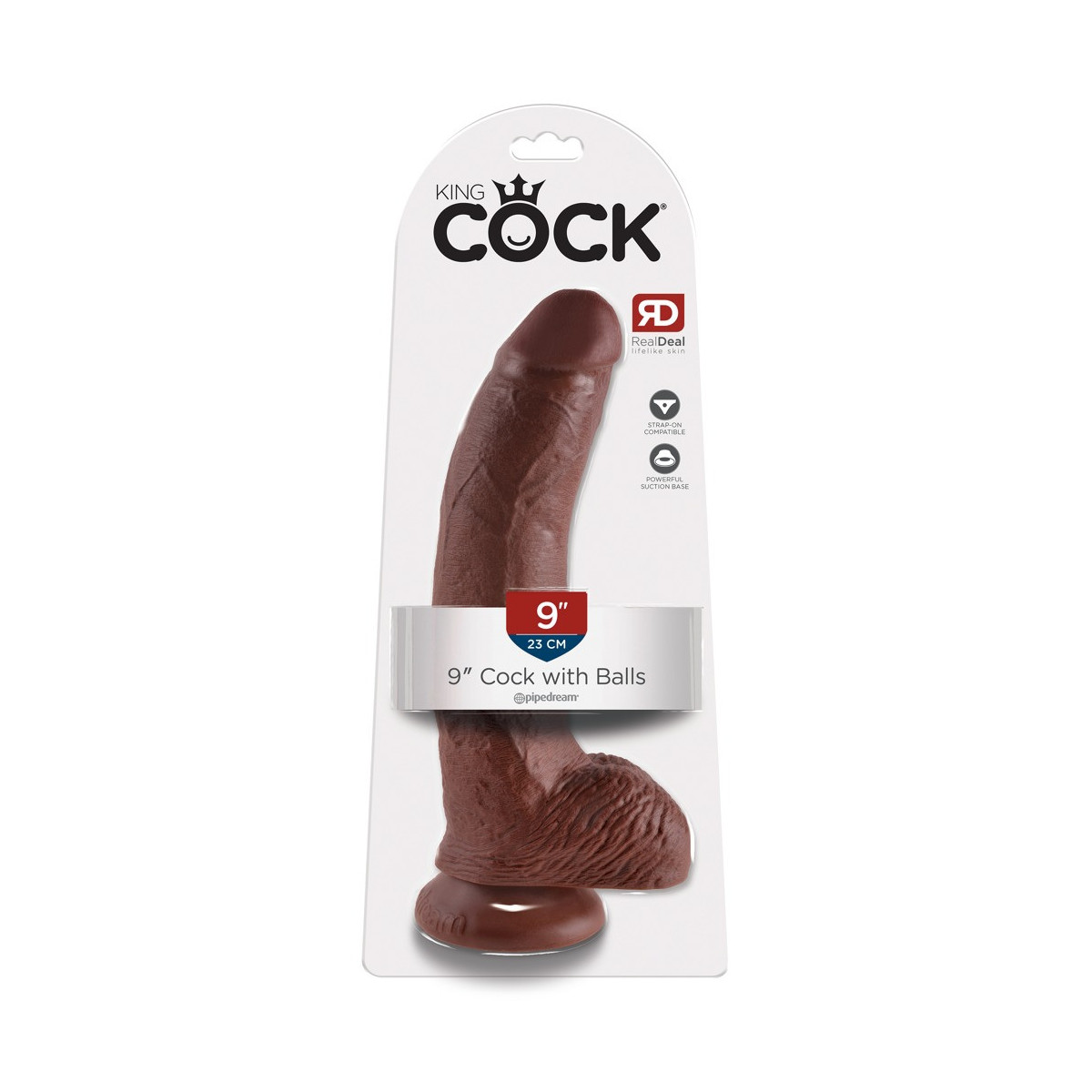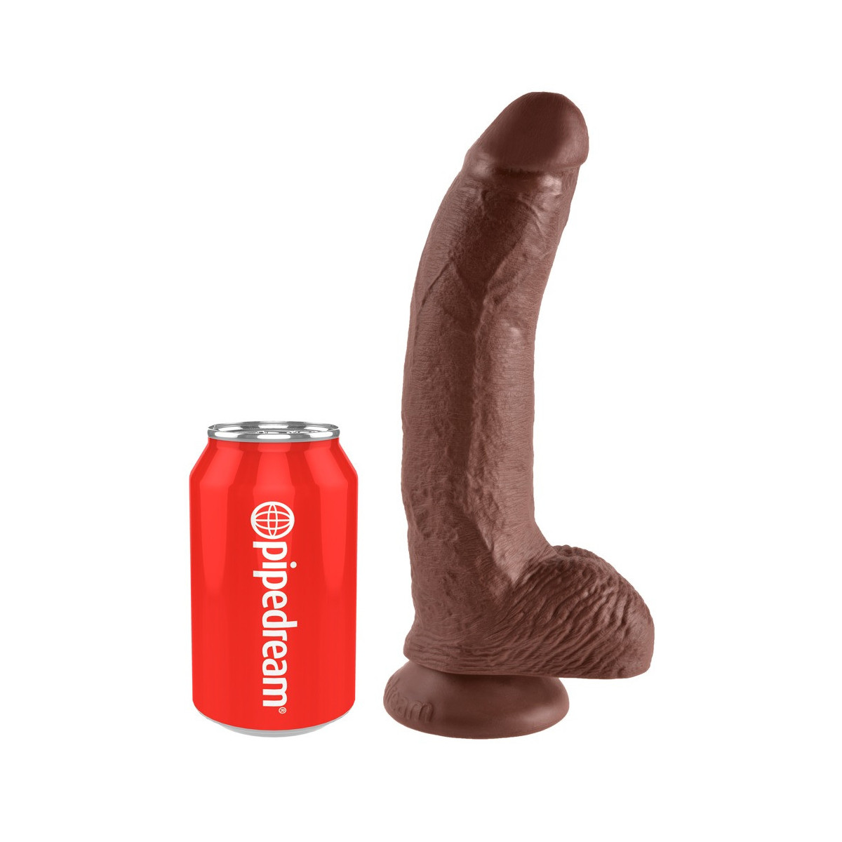 King Cock 9 With Balls Brown - Dildo Realistico con Testicoli e Ventosa, Curvo, Marrone, 22,9 cm, Ø 5,1 cm