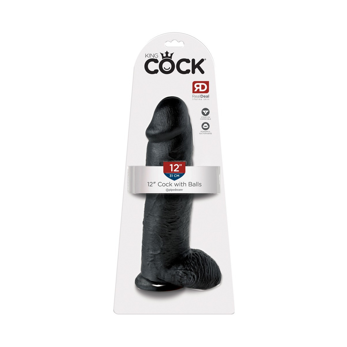 King Cock 12 With Balls Black - Dildo Realistico con Testicoli e Ventosa, Nero, 30,5 cm, Ø 7,6 cm