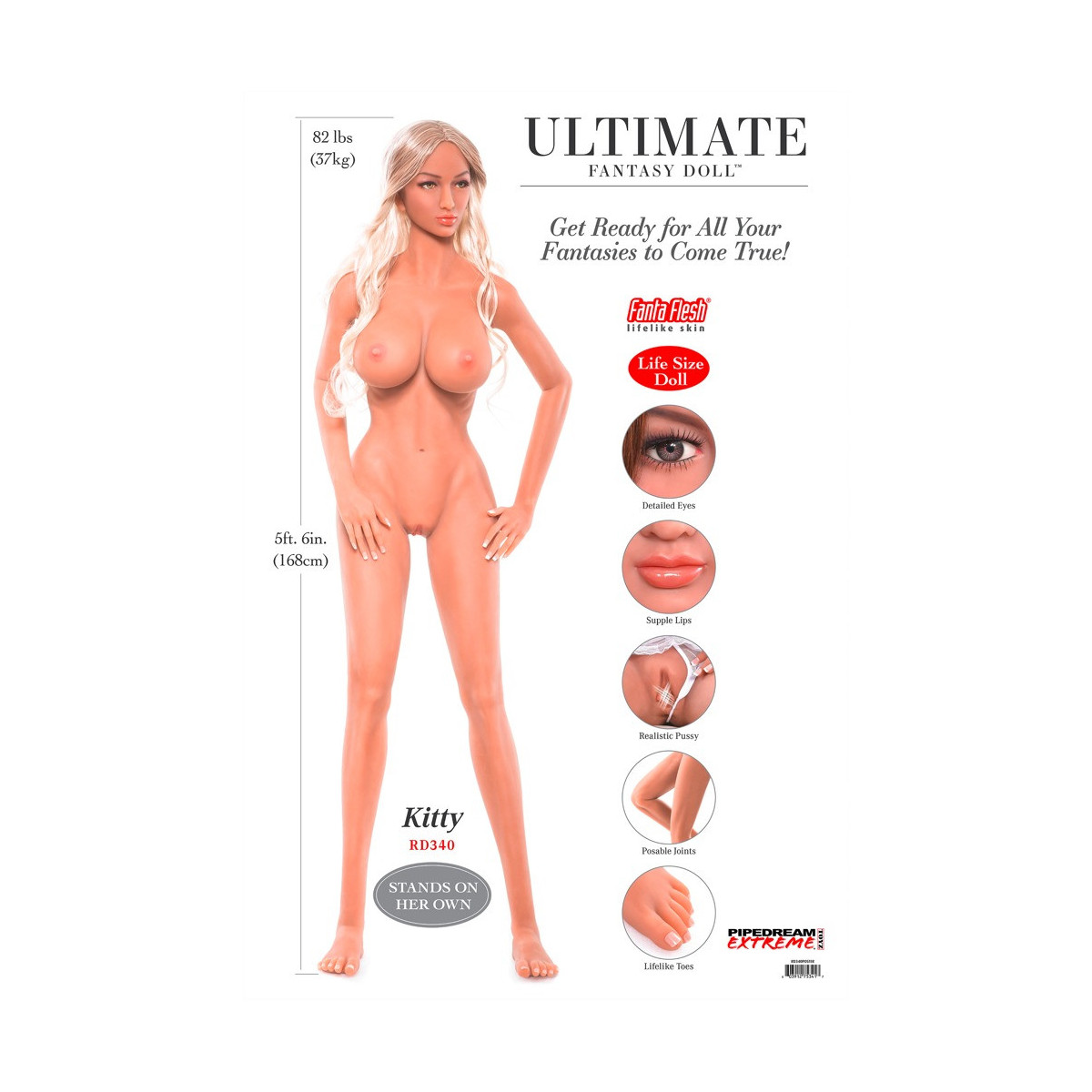 Ultimate Fantasy Dolls Kitty - Bambola a Grandezza Naturale, Viso 3D, Bionda