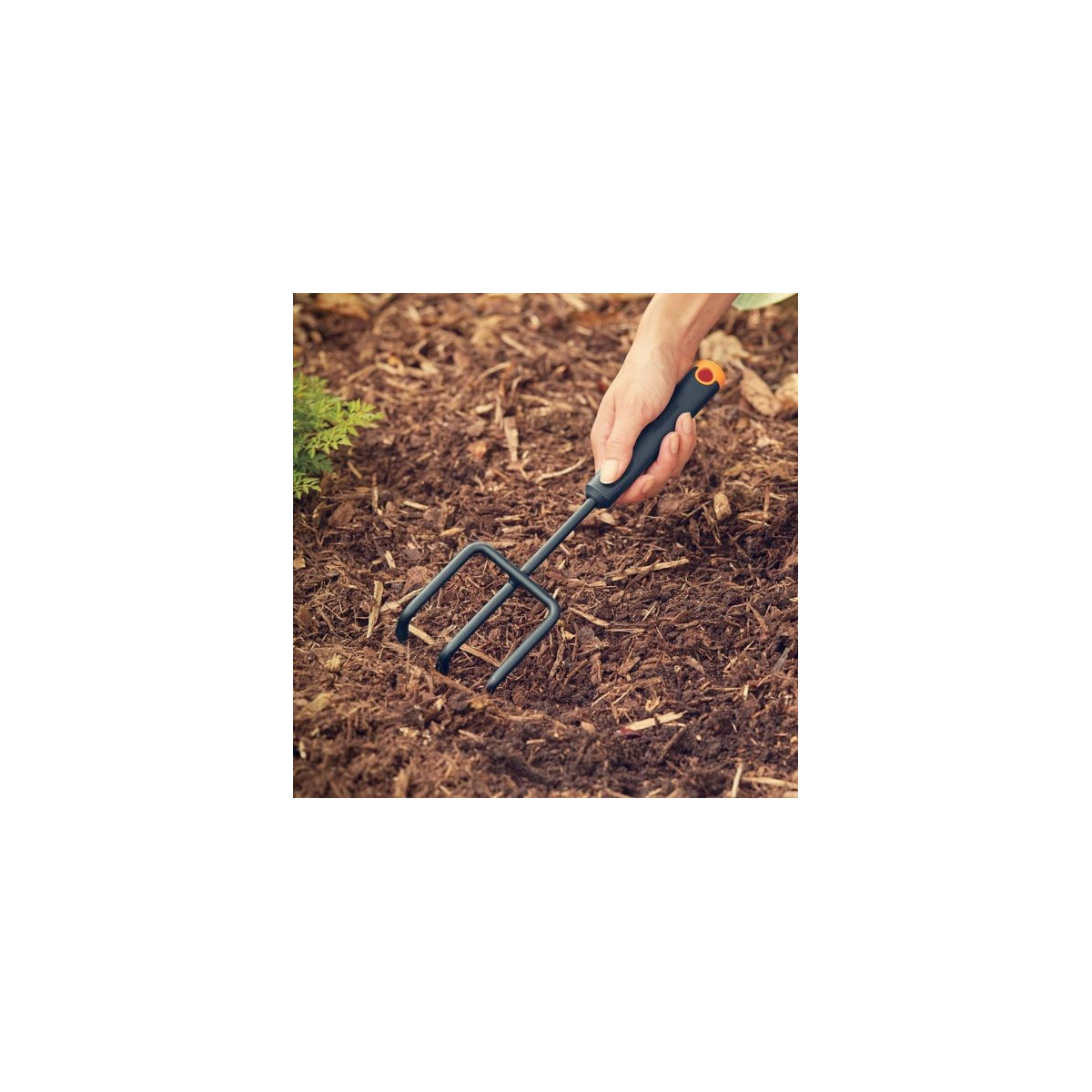 Allenta il terreno, aeralo e lavoralo con il Sarchiello Ergo di Fiskars, uno strumento resistente ma leggero. Il manico ergonomico permette un'impugnatura naturale e riduce così l'affaticamento. La testa in acciaio con rivestimento antiruggine garantisce la massima resistenza. Questo attrezzo presenta inoltre un foro nel manico, che permette di appenderlo e conservarlo facilmente.