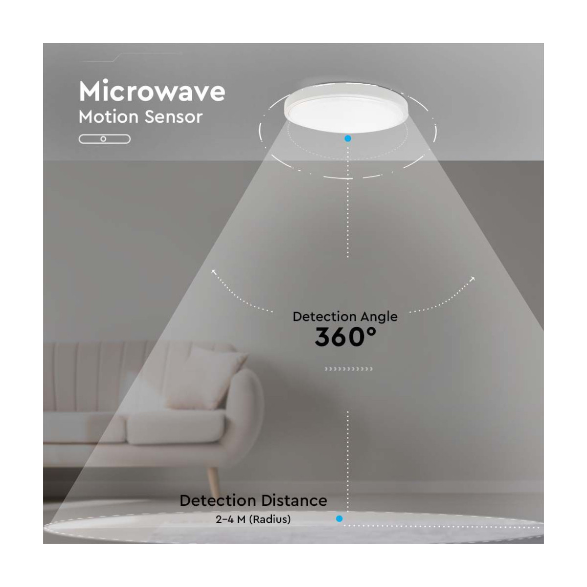 V-TAC Plafoniera LED Rotonda 24W con Sensore di Movimento a Microonde Colore Bianco 3000K IP44