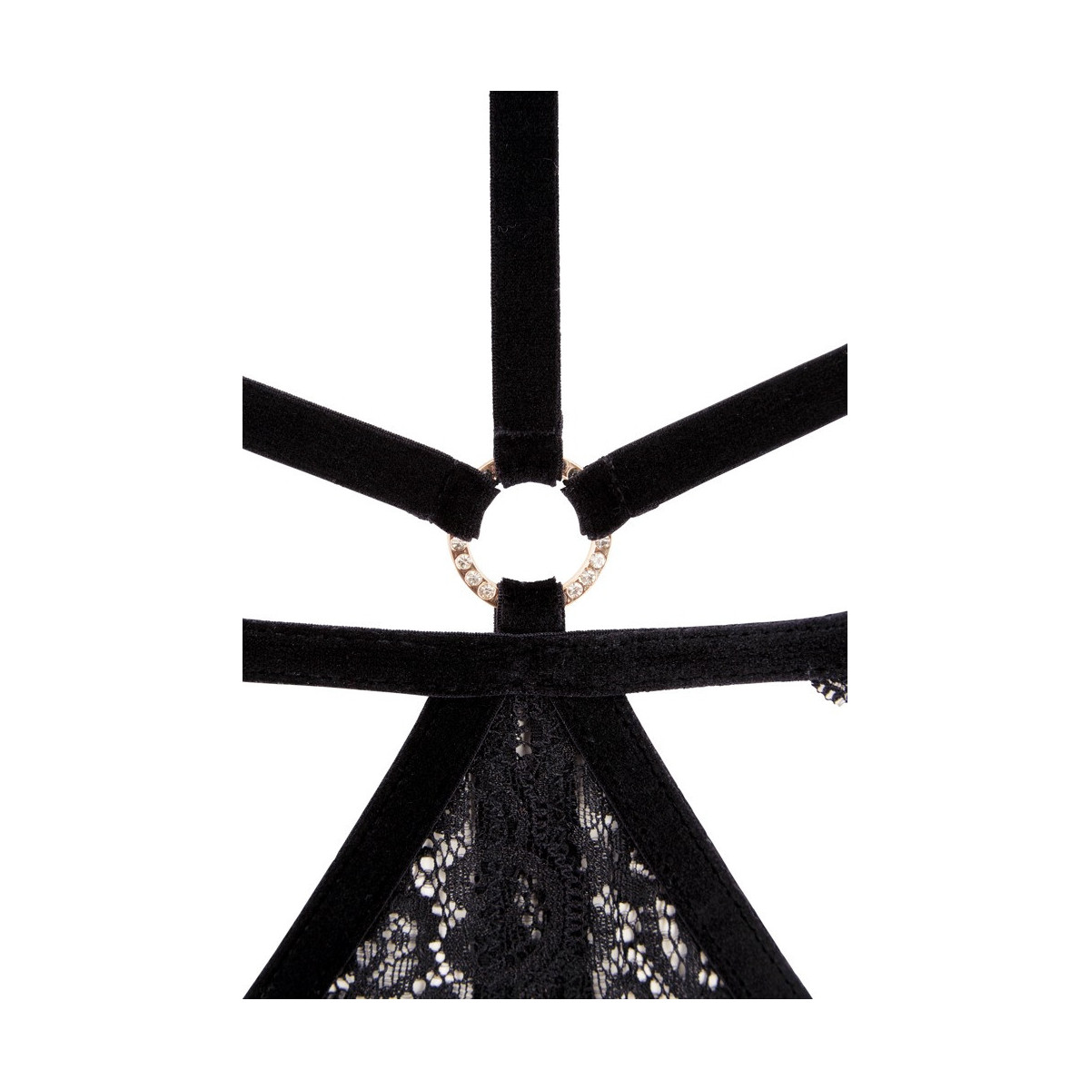 Abierta Fina Velvet - Body Nero con Cinghie di Velluto, Taglia XL