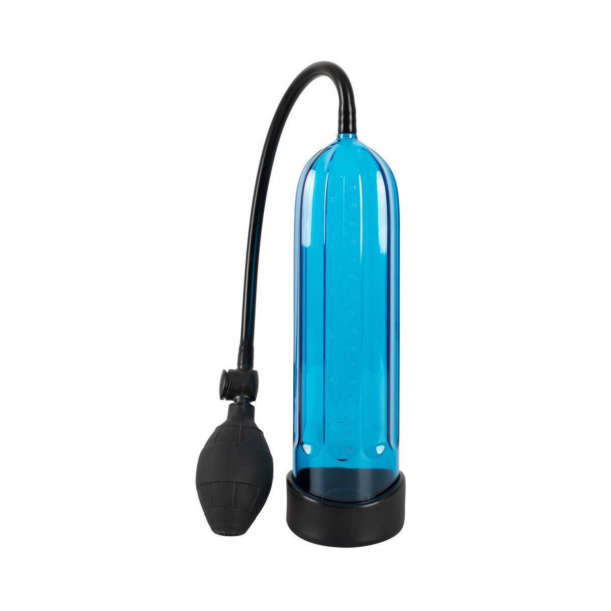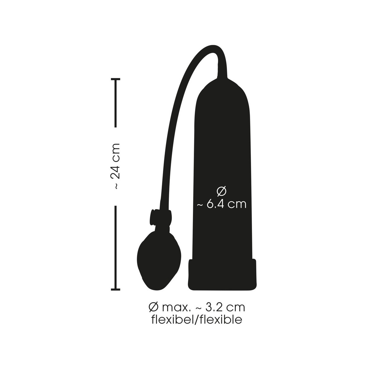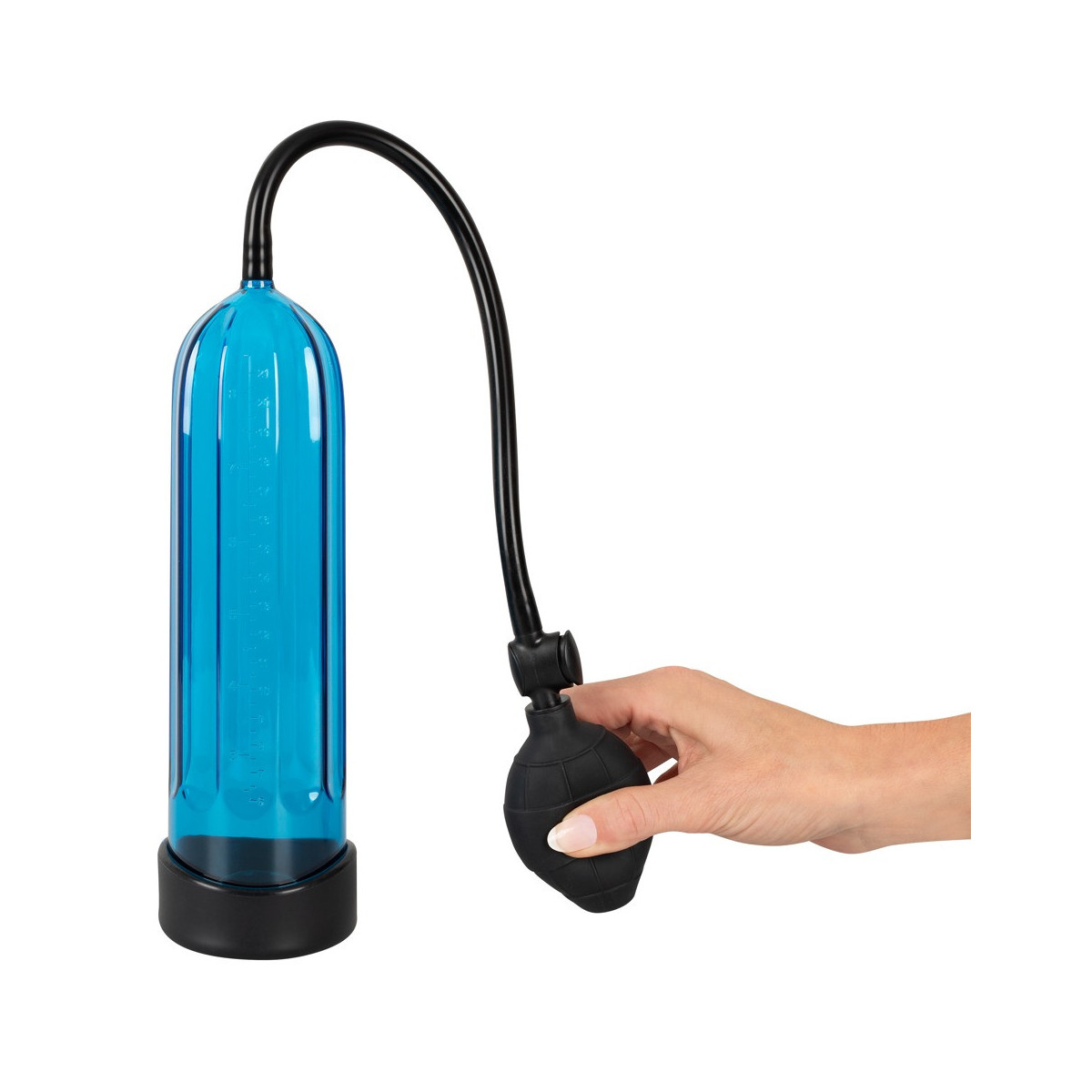 Basta con le stime vaghe su quanto è grosso e su quanto può essere grosso. Con questa pompa lo mettere in forma smagliante e poi potete leggere sulla scala quanto è potente! Cilindro ca. 24 cm di lunghezza, Ø 3,7-4,5 cm. Manicotto espandibile. Nero/blu trasparente. Materiale: ABS, silicone