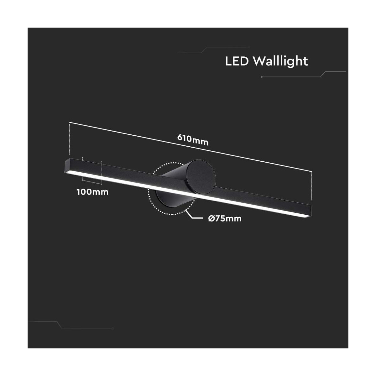 V-TAC Lampada LED da Specchio 12W Colore Nero 3000K 610*100mm IP20