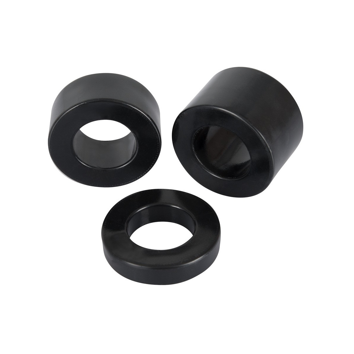 Set di 3 anelli per testicoli Ball Stretching Kit di Rebel per un perfetto allenamento dei testicoli. Si inizia con l'anello più stretto da 1 cm e si passa alla forma superiore allungata attraverso l'anello da 2 cm fino all'anello più largo da 3 cm. Gli anelli possono essere indossati singolarmente o combinati tra loro.