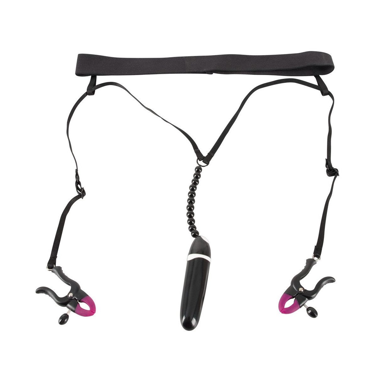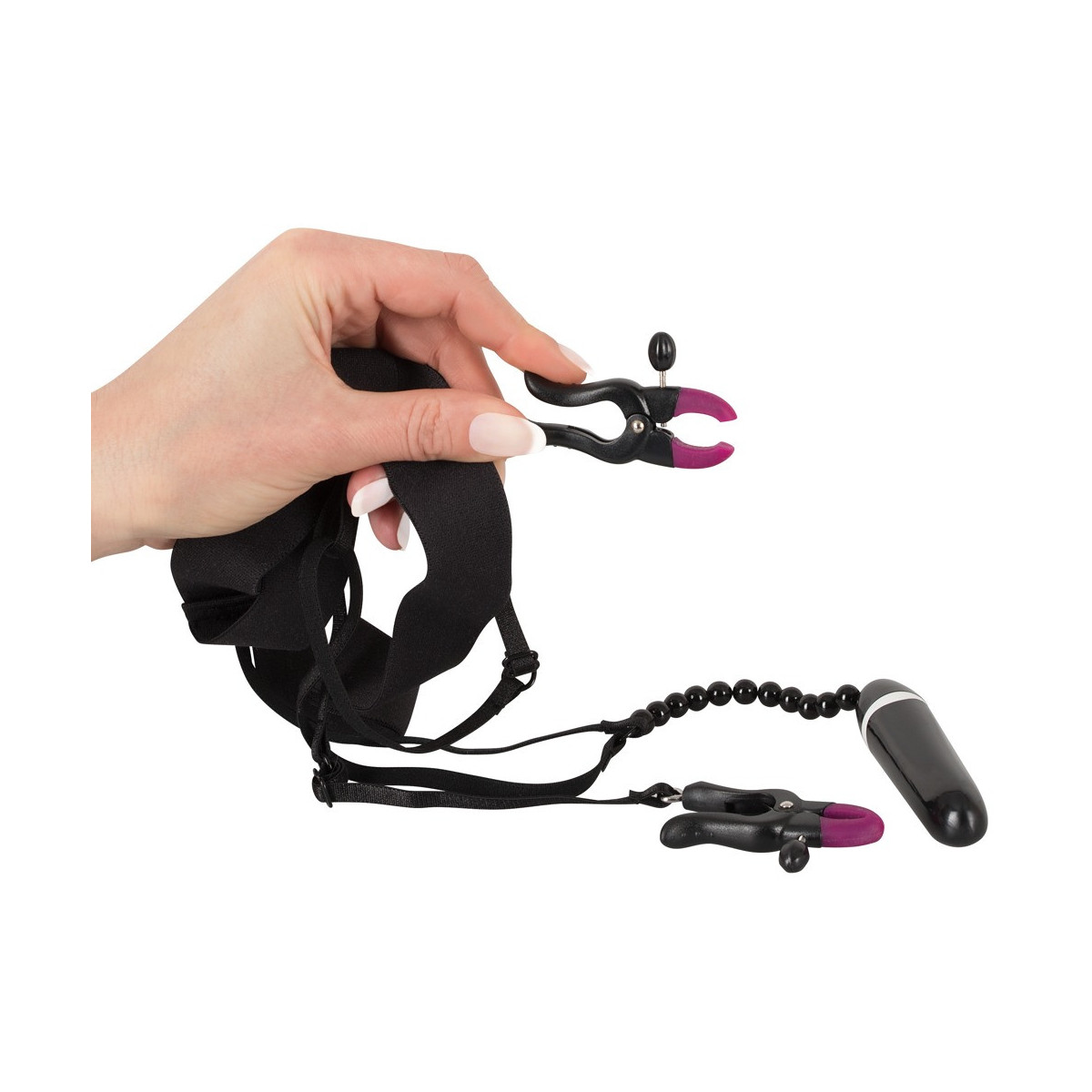 Oltre ai morsetti, la corda ha un piccolo vibratore attaccato alla corda con perline di stimolazione del clitoride. La batteria è inclusa.