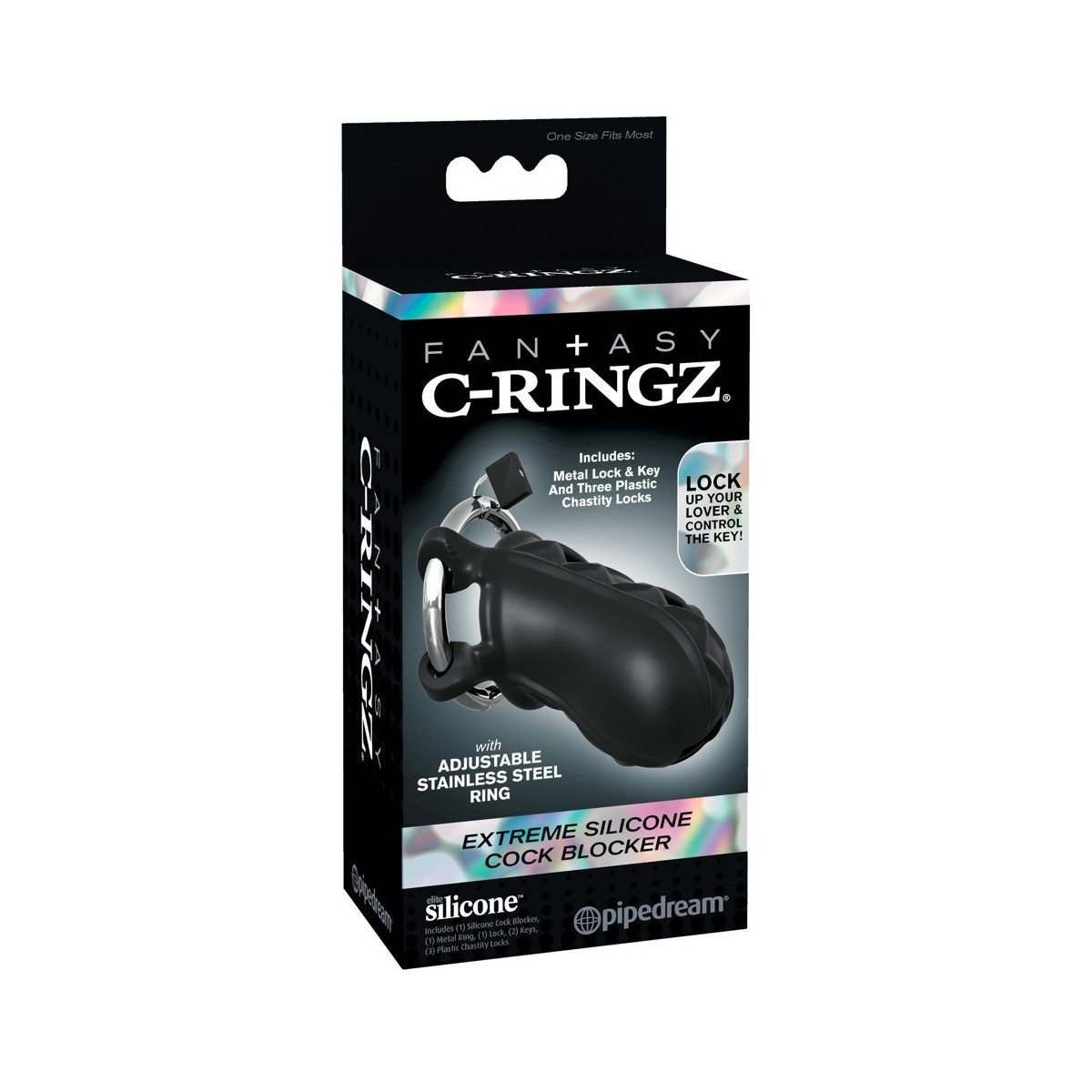 Fantasy C-Ringz Extreme Silicone Cock Bloc - Anello per Pene e per Testicoli, con Serratura, Regolabile