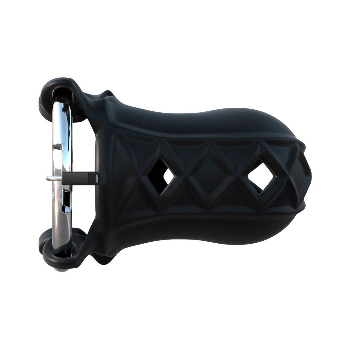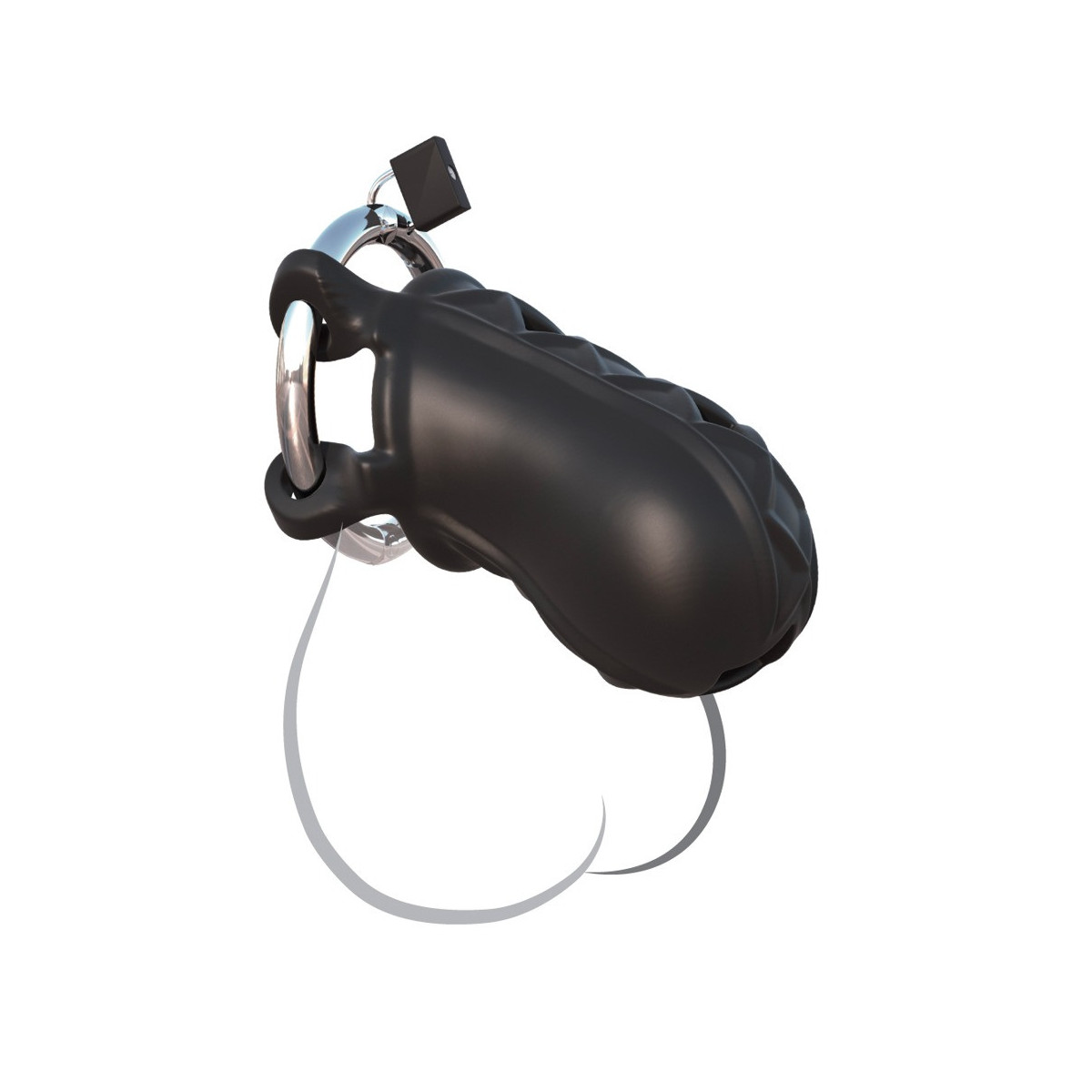 Lunghezza totale 9,5 cm, anello per il pene Ø 5,2 cm, manicotto Ø 4 cm. Silicone, acciaio.