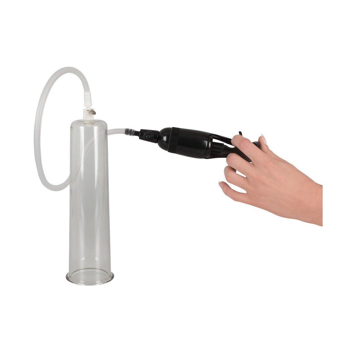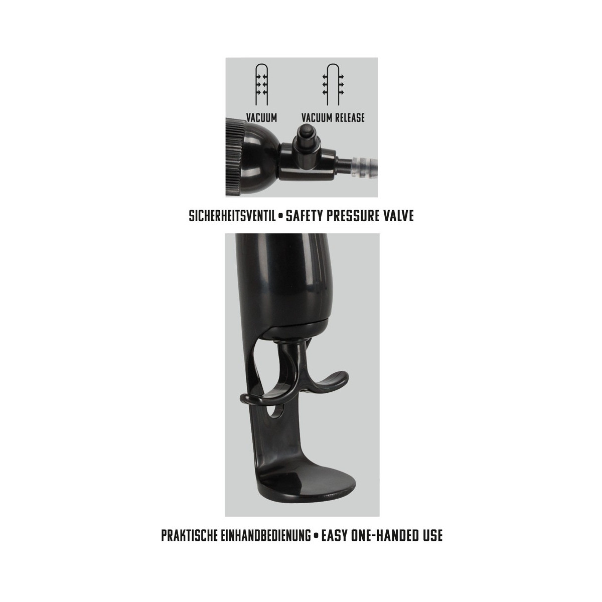 Il pene lubrificato viene inserito nel cilindro trasparente attraverso la cuffia morbida e sigillante e per mezzo della pompa a una mano, facile da usare, si genera comodamente un vuoto efficace che fa gonfiare il pezzo migliore in modo impressionante. L'impugnatura della pompa con una sola mano ha una valvola di sicurezza per un comodo controllo, che può essere utilizzata per variare la pressione negativa per regolarla in modo ottimale. C'è anche una valvola sul cilindro direttamente, così il tubo e la pompa possono essere rimossi mentre il vuoto rimane. Per una manipolazione ancora più facile e una maggiore libertà di movimento!
