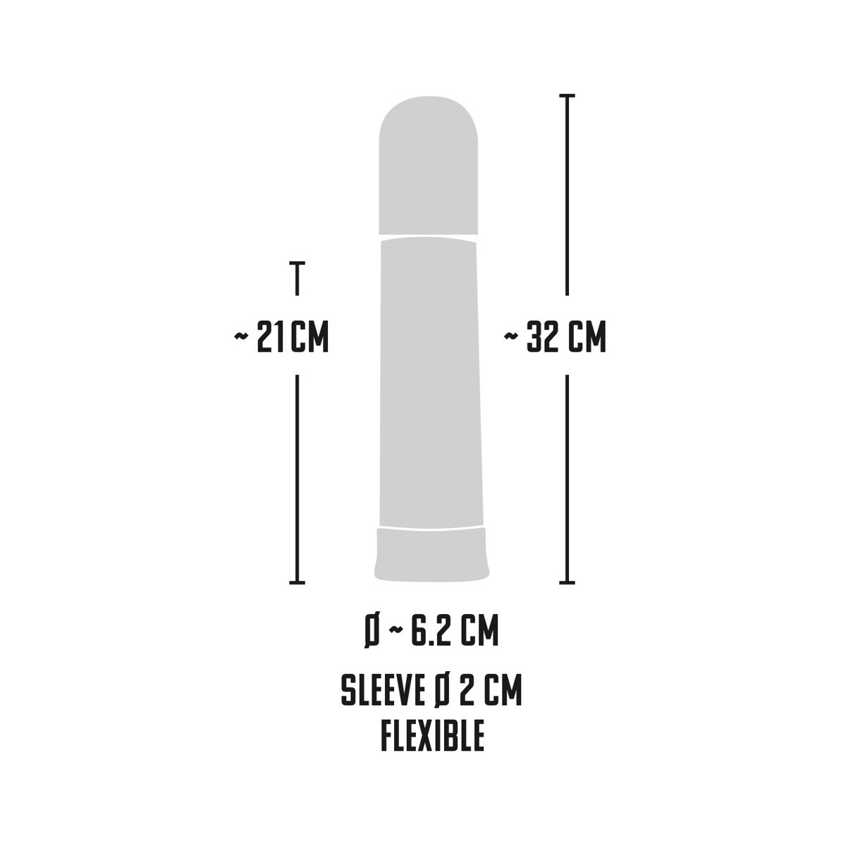 Lunghezza 32 cm, profondità di inserimento 20 cm, Ø manicotto 2 cm (estensibile). ABS, TPE, policarbonati.