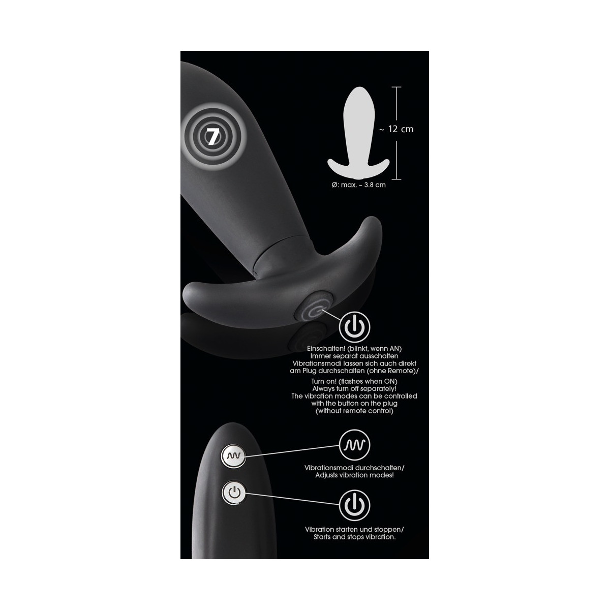 Plug anale liscio come la seta con 7 modalità di vibrazione. Controllabile con la semplice pressione di un tasto o di un telecomando. La spina conica è facile da inserire e fornisce una piacevole sensazione di pienezza. L'ampia base fornisce una presa sicura e può essere utilizzata anche come maniglia. Perfetto per i principianti! Batterie incluse.