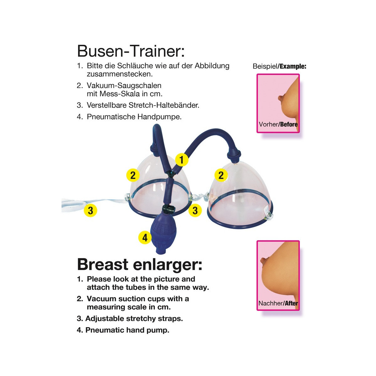 Coppe di aspirazione seno trasparente per il rapido aumento del seno! Con pompa. Guarnizione e pompa color viola. Adatto fino alla coppa D. Materiale: ABS, PVC.