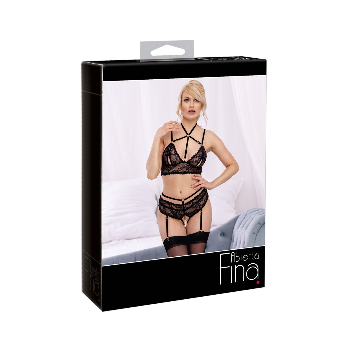 Abierta Fina - Set Reggiseno, Reggicalze, Pizzo Nero, Tg XL
