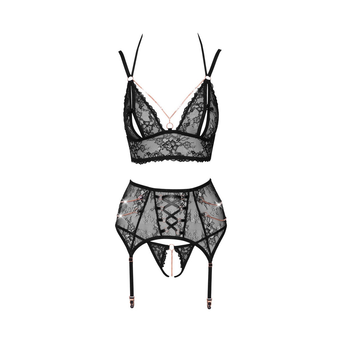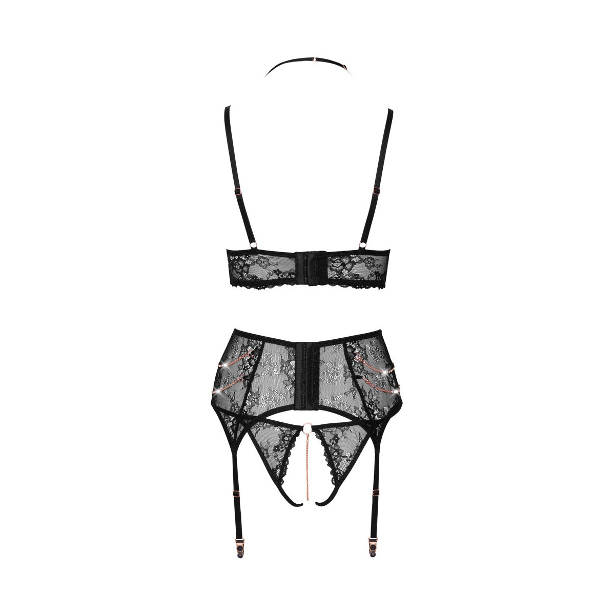 Abierta Fina Bra - Set in Pizzo Nero, Reggiseno, Reggicalze, Tg L