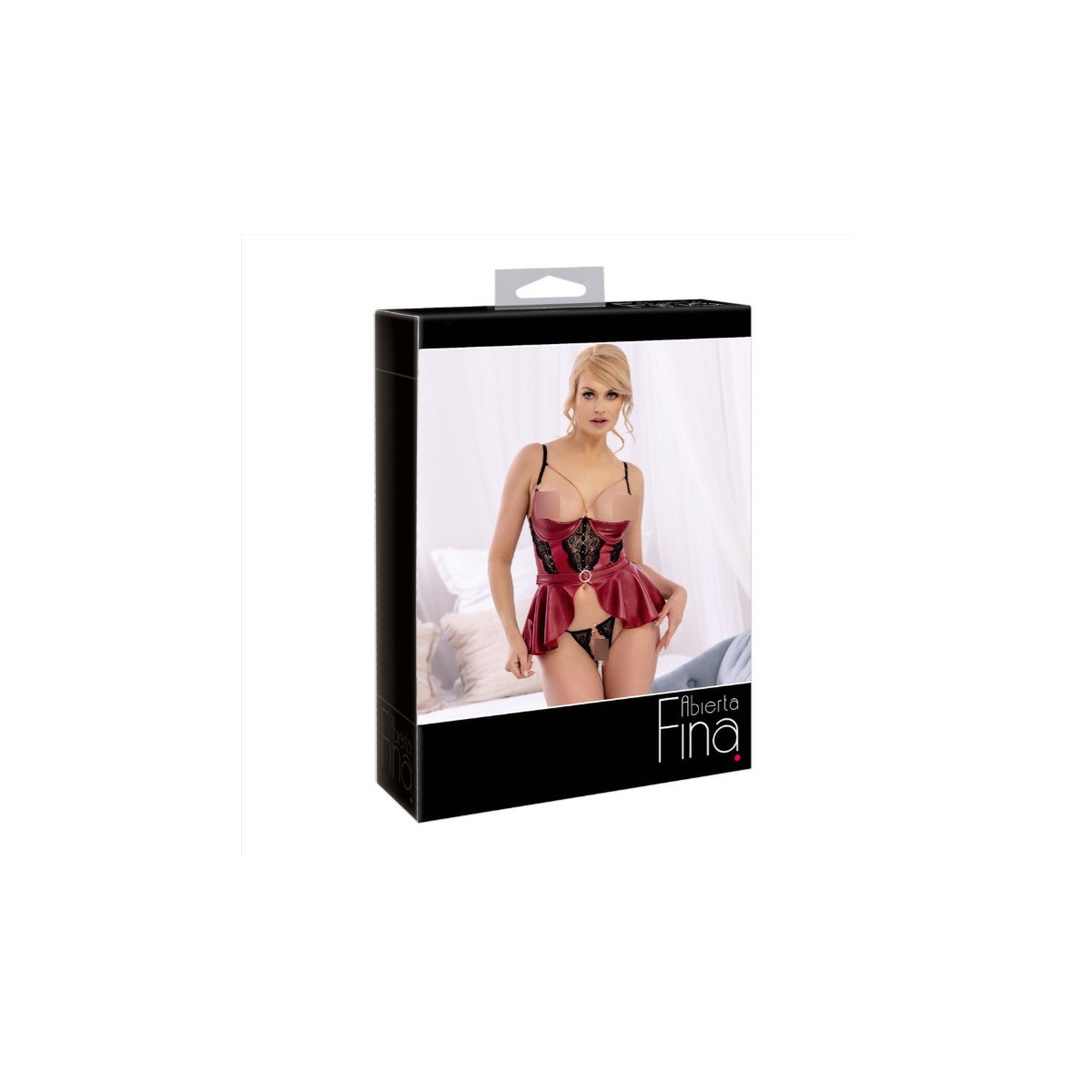 Halter lungo tempestato di strass con balza e perizoma di pizzo senza cavallo in un set di Abierta Fina. Il reggiseno longline in un mix di look opaco e pizzo fine solleva perfettamente il seno con le sue coppe leggermente imbottite con ferretto e lo presenta offensivamente incorniciato da catene color oro rosa. La vita è accentuata da una grande fibbia di strass in un look a cintura e i fianchi sono sensualmente abbracciati dalla balza oscillante. Il perizoma di pizzo completamente inguinale seduce con una stimolante catena inguinale in una lucentezza d'oro rosa. Catena tutta rimovibile; cinghie regolabili.