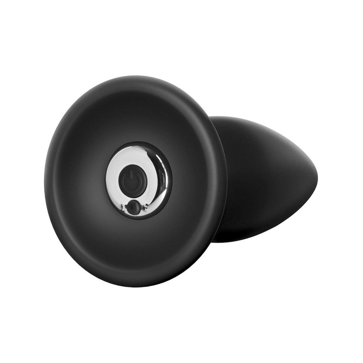 Spina anale nera con vibrazione a 7 fasi con la semplice pressione di un pulsante. Con maniglia di ritorno e impermeabile. Incluso cavo di ricarica USB.