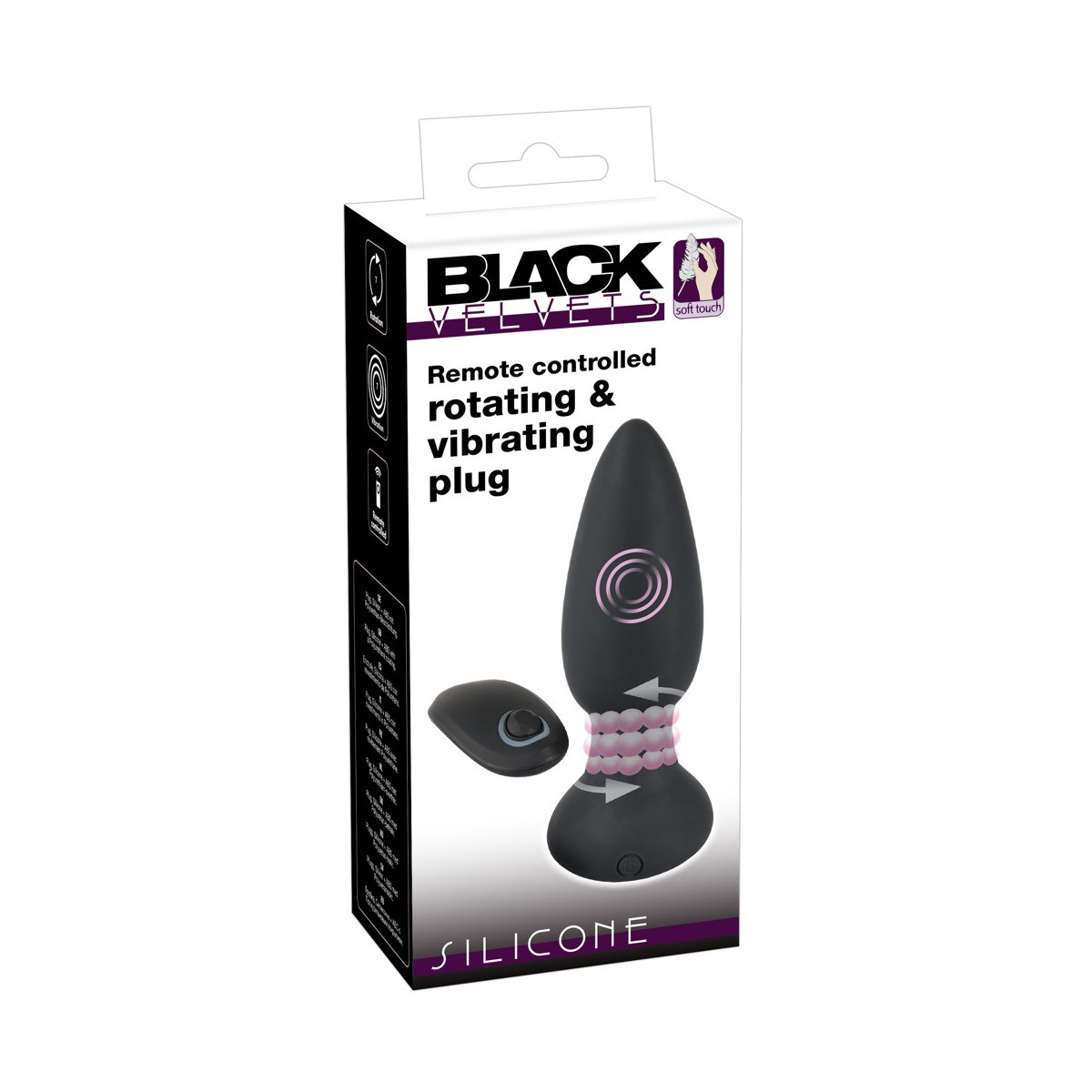 Black Velvets - Plug Anale con Rotazione. Telecomando, Silicone, Nero