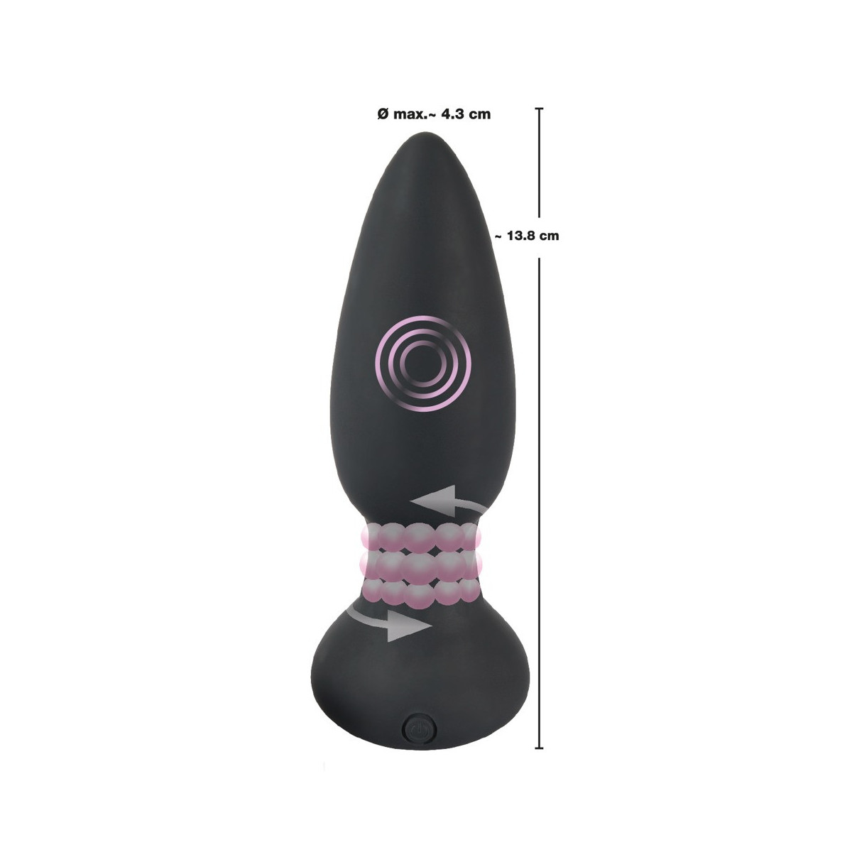 Lunghezza totale 14 cm, lunghezza d'inserimento 11 cm, Ø 4,2 cm. Silicone, ABS, PU.