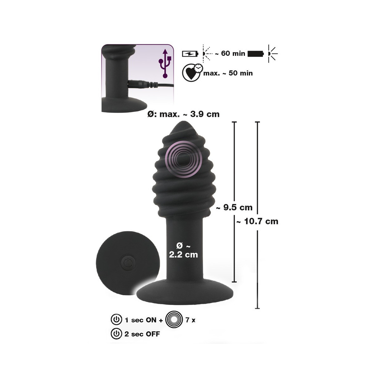 Plug anale a torsione idealmente sagomato e affusolato di Black Velvets con vibrazione e struttura della scanalatura pronunciata. Le 7 modalità di vibrazione forniscono un piacere anale vario, mentre il materiale morbido penetra meravigliosamente nelle regioni anali. Il supporto impedisce alla spina di scivolare troppo in profondità e allo stesso tempo permette una guida a mani libere. La spina fornisce anche un sacco di piacere nella vasca da bagno o nella doccia, poiché è impermeabile. È facilmente ricaricabile con il cavo USB incluso.